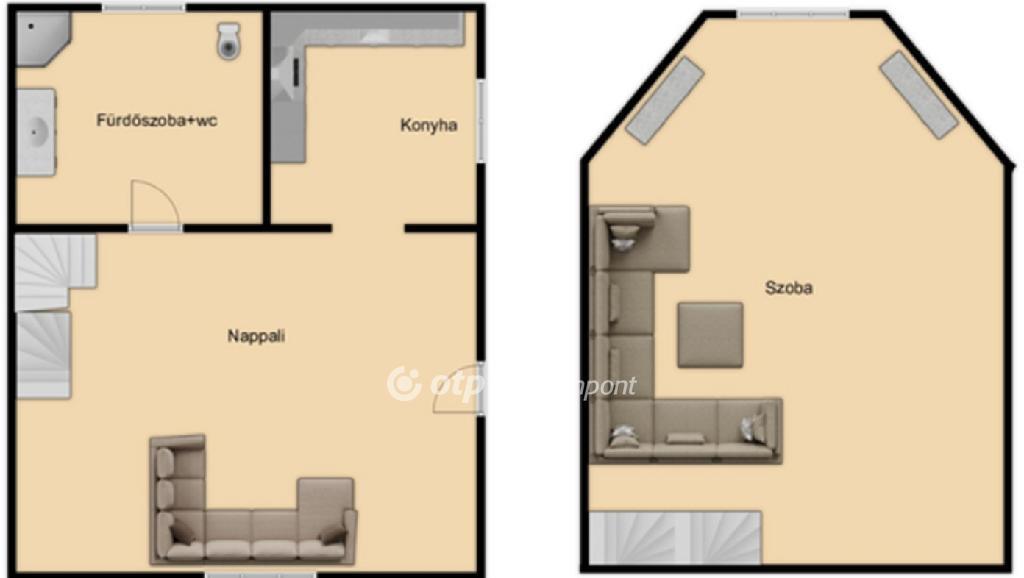 -a hangulatos világos belső helyiségben: nappali , konyha , fürdőszoba+wc , az emeleten 1 tágas szoba található