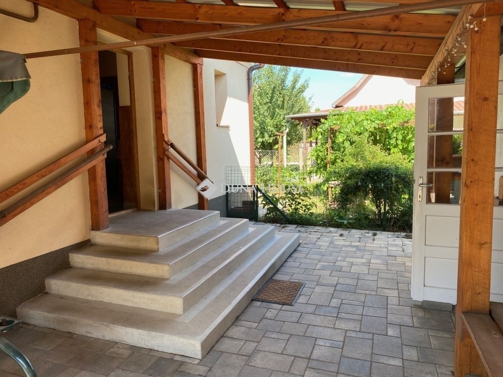 Debrecen Tégláskert részén eladó egy teljeskörűen felújított családi ház, rendezett, részben parkosított, részben térkövezett udvarral. A főépület szigetelt tégla falazatú, héjazata cserepes lemez, új, fa nyílászárókkal. A melléképület vegyes falazatú, pala fedéssel és fa nyílászárókkal. A két épületrészt egy nagy, fedett terasz köti össze. A főépületben található két szoba, egy gardrób, egy fürdőszoba, valamint egy előszoba. A melléképületben került kialakításra a konyha helyiség és egy különálló tároló. A konyha teljes körűen gépesített, modern, újszerű állapotban van. Az épülethez tartozik még egy nagyobb méretű garázs. Az ingatlan fűtéséről egy gázkazán gondoskodik, a meleg vizet pedig bojler szolgáltatja. A közelben található buszmegálló, oktatási - nevelési és egészségügyi intézmények, a belváros pedig percek alatt elérhető.
