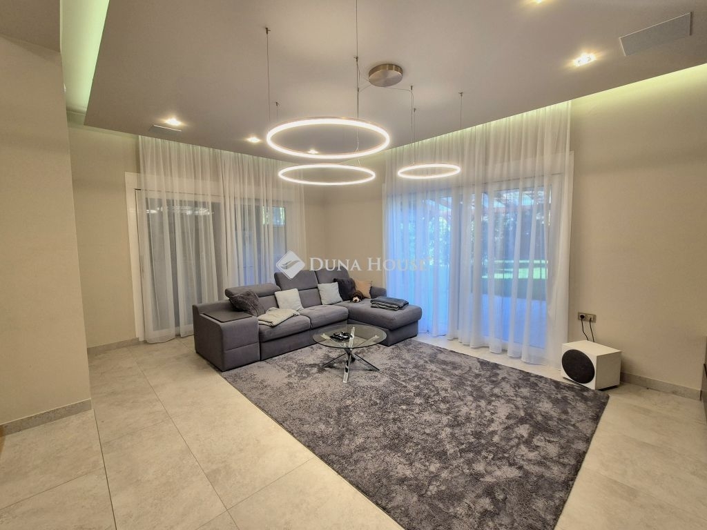 Exkluzív sorházi lakás a debreceni Liget-lakóparkban eladó.Eladásra kínálom Debrecen Liget I. lakóparkjában, játszótérrel, teniszpályával, sportpályával, 24 órás állandó portaszolgálattal, beléptető rendszerrel ellátott 180 m2-es, kétszintes, hőszigetelt, napelemmel ellátott, riasztóval rendelkező sorházi lakást, amely a modern elegancia és a praktikum tökéletes harmóniája.A szomszédokkal csak a garázs érintkezik.A ház 2006-ban épült és 380 nm-es telken helyezkedik el.A ház:- az összes nyílászáró 3 rétegű műanyag nyílászáróval rendelkezik- a házban az összes redőny alumínium, távirányítós vezérlésű, motoros redőny,- szúnyogháló mindenhol- 2 db klíma gondoskodik az épület hűtéséről, mely telefonról vezérelhető,- gázkazán, illetve elektromos kazán, padlófűtés- 10 KW napelem rendszer lett kiépítve,- riasztó- elektromos autótöltő (3x16 a) lett kiépítve- hőszigetelt 30-as téglafalak + hőszigetelés,- Dupla garázs, mely csempézett, vízvételi lehetőséggel, padlófűtéssel, és egy wc-vel rendelkezik,- az ingatlanhoz közvetlenül kapcsolódik egy téliesített fedett terasz tetőablakokkal és nyitható üveggel zárt (25 nm), amely fűthető, klímával, és konyhaszigettel rendelkezik. A Terasz üveggel fedett, mely igény esetén teljesen kinyitható.- továbbá egy nyitott, azonban fedett terasz is megtalálható, mely 20nm.Elosztása:A lakás földszintjén található előszoba, WC, kamra, tároló, valamint nagy nappali, konyha és étkező egy légtérben.Az emeleten három hálószoba, amelyek nem csapottak, nagy kádas és zuhanyzós fürdőszoba WC-vel, valamint egy hall és egy gardróbszoba.A nappaliból vagy a fedett teraszról kilépve a parkosított, 200 m2-es kert automataöntözéssel, gyönyörű növényzettel rendelkezik. Található még a kertben egy épített bográcsozó, grillező.A házhoz kapcsolódik még egy előkert, valamint egy elő terasz (8nm), illetve a garázs előtt még egy gépkocsi tárolására alkalmas terület található.Az ingatlan 1/1 tulajdonban van, valamint per és terhementes.