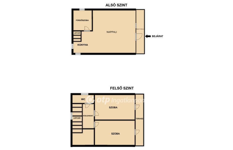 Eladó egy 42 nm alapterületű, beton alapokra épült könnyűszerkezetes ház, tetőtér-beépítéssel és dupla terasszal, amely egész évben,télen-nyáron lakható.