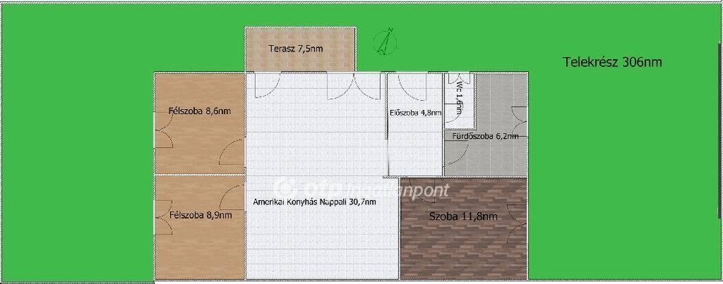 Az ingatlanhoz saját 306m2 udvar tartozik autóbeállási lehetőséggel, valamint játszótérrel és kerti tárolóval.