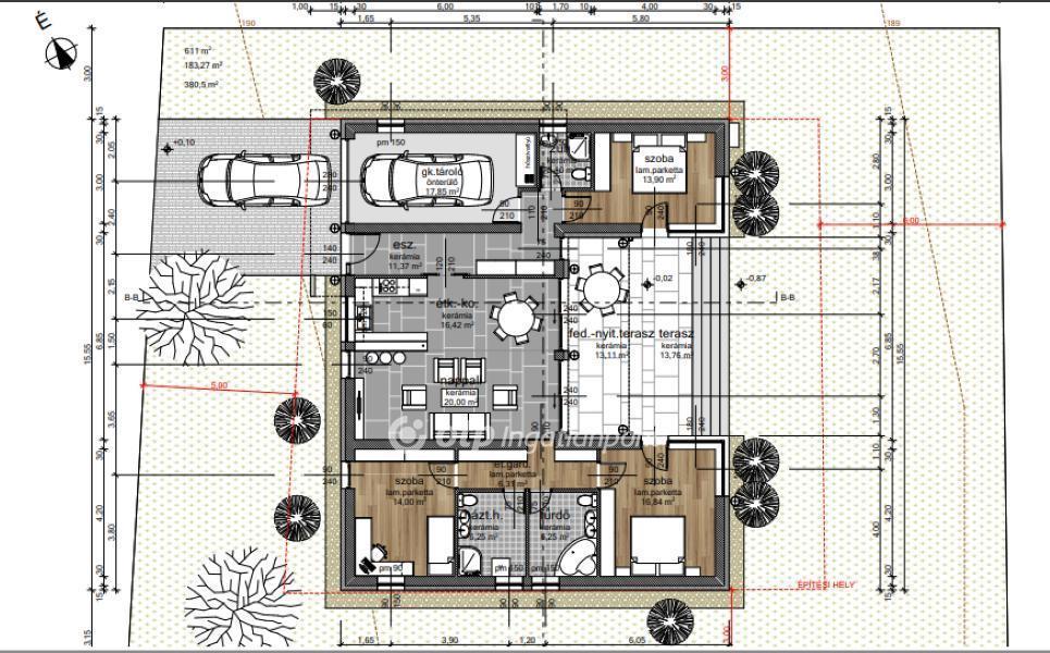 A belső burkolatok, ajtók, szaniterek választhatóak, de a projekt jelen szakaszában még a belső elosztás végső kialakításába is beleszólhat az új tulajdonos!