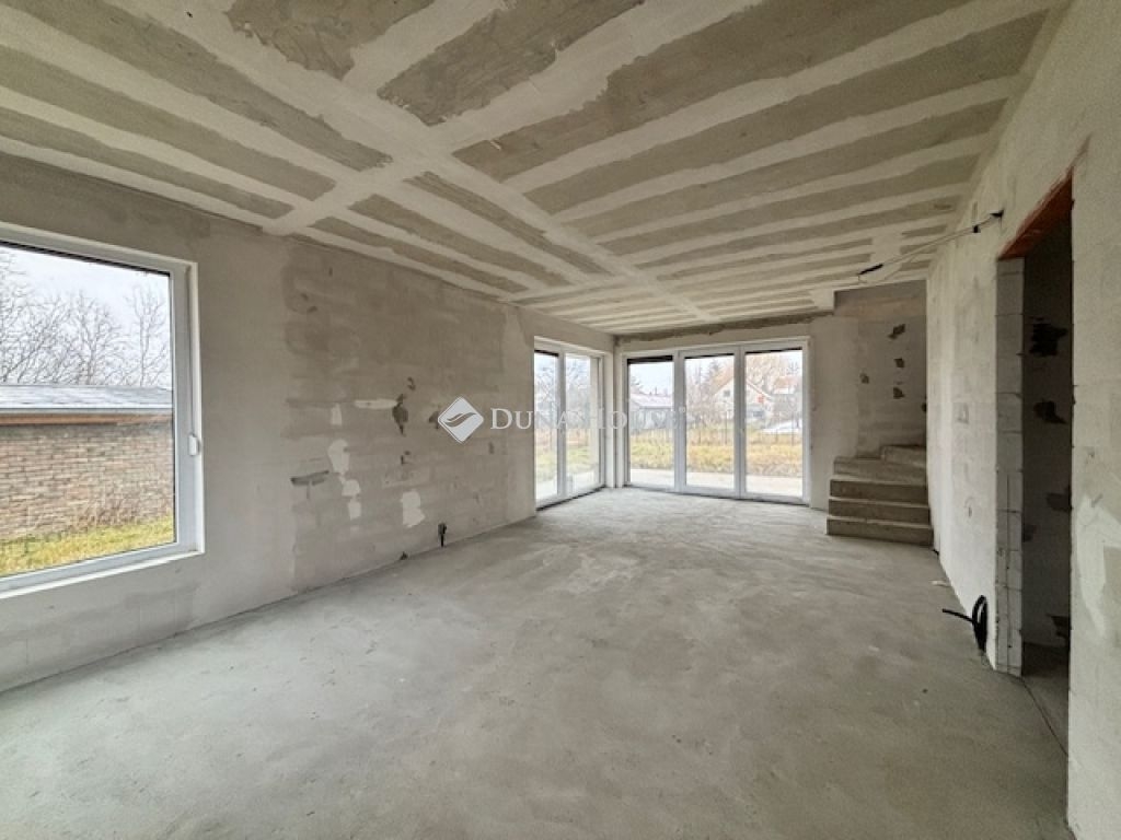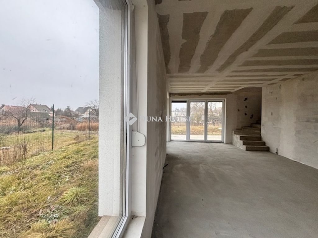 Diósdon kínálok eladásra egy napelemes, nettó 138,27 négyzetméteres, amerikai konyhás-nappali plusz négy szobás kialakítású, kétszintes, jelenleg 70 százalékos készültségi foknak megfelelő állapotú ikerházat.Az ár, a jelenlegi készültségi fokra vonatkozik!A lakás nemcsak magas minőségével, hanem kiváló elrendezésével és kényelmes méretű szobáival is kiemelkedik a piacon. Az ingatlantípusa egyedülálló lehetőséget biztosít azok számára, akik igényes otthonra vágyakoznak.A lakás különlegességét tovább növeli, hogy energiahatékony megoldásokra építkezik; napelemes rendszer biztosítja a fűtést, aminek köszönhetően a rezsi költségek jelentős mértékben csökkenthetők. Emellett a lakás kedvező elhelyezkedése révén a nappaliból és a szobákból is gyönyörű kertre nyíló kilátásban lehet részünk, ami még inkább otthonossá és kellemessé teszi a mindennapokat.A házhoz tartozó telek mérete 345 négyzetméter. Jelenleg a ház tető alatt van, bent vannak a nyílászárók, a földszinten elektromos redőnnyel és szúnyoghálóval. A szigetelés és a színezés is elkészült. A fűtés és az elektromos hálózat elő van készítve, be van csövezve. 2025-ben került fel a tetőre a 2,5 KW napelem 12 KW inverterrel. Műszaki tartalom:- 30-as YTONG falazat- 15 cm grafitos szigetelés- a két lakás között Silka HML300 akusztikai fal- monolit vasbeton födém- tetőn sötétszürke hornyolt cserépfedés- 3 rétegű nyílászárók- elektromos Hörman kapuAz ingatlan e-naplóval rendelkezik, az összes tervdokumentáció a rendelkezésre áll.Infrastruktúra kiváló, közelben iskola, óvoda, bevásárlási lehetőségek.A Duna House teljes kínálatával kapcsolatban forduljon hozzám bizalommal!Ingyenes hitelügyintézés garantáltan a legjobb feltételekkel és a leggyorsabban.Eladás és vétel teljes körű ügyintézése, ingyenes tanácsadás, értékbecslés, megbízható ügyvédi háttér biztosítása Hibás hirdetés bejelentése