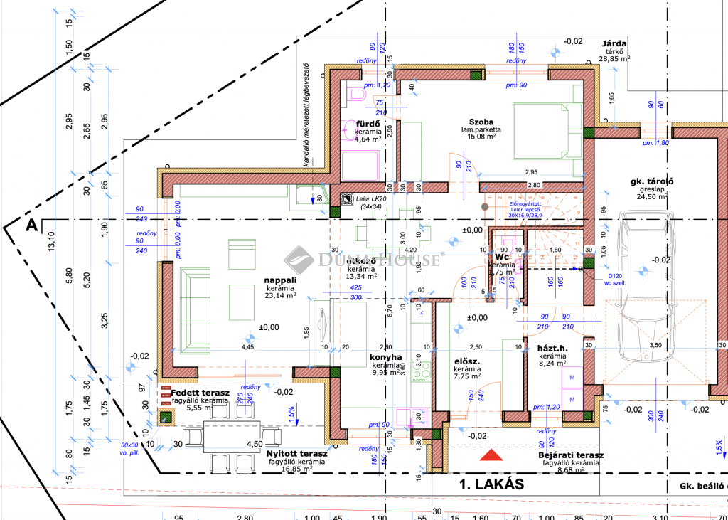 RING LIGET LUXUS LAKÓPARK AZ ERDŐ KÖZELSÉGÉBEN !MAGAS MŰSZAKI TARTALOMMAL ÉPÜLŐ ÖNÁLLÓ CSALÁDI HÁZAK ÉS IKERHÁZAK ELADÓAK!1.8 HEKTÁROS TERÜLETÉN, MELY KÖZIGAZGATÁSILAG DIÓSDHOZ TARTOZIK , ÖSSZESEN 16 KÉTLAKÁSOS ÉS 1 EGYLAKÁSOS LAKÓÉPÜLET KERÜL MEGÉPÍTÉSRE 2 Ütemben. Az első ütemben 7 kétlakásos és 3 egylakásos épül, amiből már 3 db ingatlan elkelt.Most Öné lehet idén bevezető áron egy nettó 170 m2-es 2 szintes ikerház. CSAK GARÁZZSAL ÉRINTKEZNEK. Az ott megépülő új ingatlanokat egy saját térkövezett, sorompóval lezárt utcáról lehet majd megközelíteni.Tágas, világos terek köszönhetően az egyedi jó méretű nyílászáróknak.Hozzá tartozó telek mérete 535 m2.Az ingatlant a 2024-es év kedvezményes feltételeivel is megtudja vásárolni, az építkezés céges.Foglalja le már most leendő otthonát 10%-al. Az építkezés hamarosan kezdetét veszi, így saját ízlése és igénye szerint választhatja ki a ház belső kinézetét illetve végig követheti az építkezést.Amennyiben egyedi igényei lennének az elosztással kapcsolatban a kivitelező rugalmas a változtatásokra.Elosztását tekintve: Földszint:- 1 állásos garázs- előszoba- külön mellékhelyiség- háztartási helyiség- 1 hálószoba saját fürdőszobával- tágas és világos amerikai konyhás nappali teraszkapcsolattalEmelet:- jó méretű szülői háló, saját fürdővel és gardróbbal- 2 egész méretű hálószoba - fürdőszoba- külön mellékhelyiségMűszaki adatok:- 30-as Porotherm X-therm tégla falazat, 10 cm tégla válaszfalak- 20 cm homlokzati szigetelés- Hőszivattyú fűtés 300 literes indirect tárolóval- Minden helyiségben padlófűtés- Tetőn korcolt lemezfedés - 3 rétegű 5 légkamrás nyílászárók- Riasztó, kamera, napelem előkészítés- Szaniterek - Hideg/meleg burkolatok ( 10 000 Ft/m2 meleg: 10 000 Ft/ m2 )- Beltéri ajtók ( 100 000 Ft/db )- 5 ponton záródó bejárati ajtóEzek mind kiemelkedő minőségben és az átlagnál magasabb áron választhatóak. Árlista tőlem kérhető.Az építkezés megtekintése után minden a házzal kapcsolatos dokumentáció rendelkezésre áll.EXTRÁK: - Ház homlokzatán díszkő burkolat- Térkövezés- Elektromos alumínium redőnyök - 3 db klíma készülék- Vízlágyító berendezésKörnyék rendezett, csendes, minden perceken belül elérhető autóval.Várható átadás: 2025 TavaszTovábbi információkért hívjon bizalommal. Hibás hirdetés bejelentése