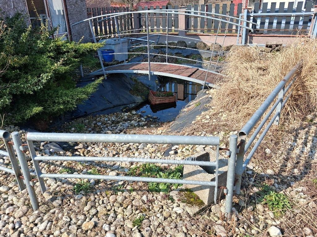 A kazánház két ajtóval rendelkezik: az egyik a házba, a másik az udvarra vezet, így a tűzifa behordása kényelmesen megoldható. A garázsból egy oldalsó ajtón keresztül, a kerti tó felett átvezető kis hídon jutunk az udvar további részére. Az udvaron található füves terület locsolása a fúrt kútról megoldott.