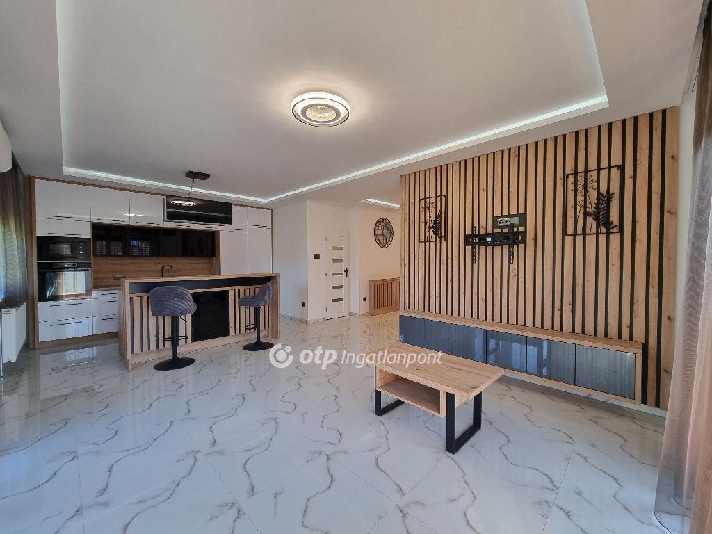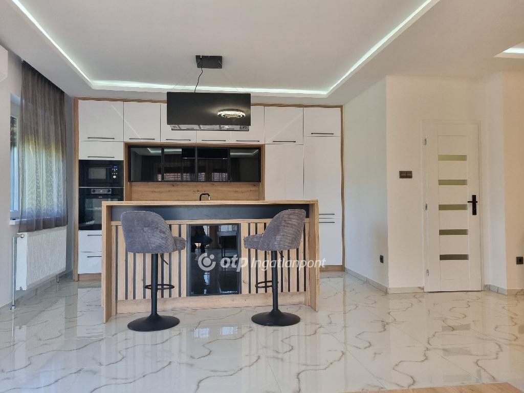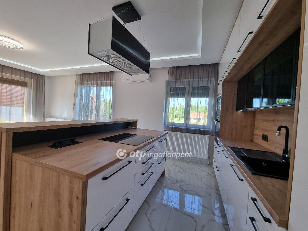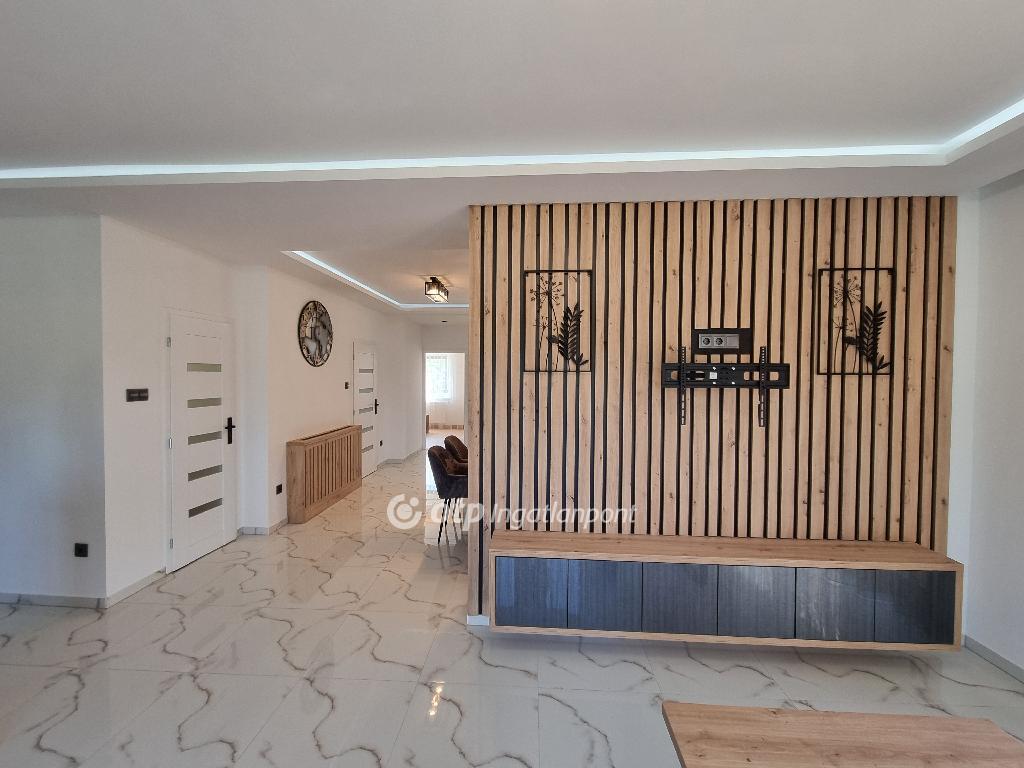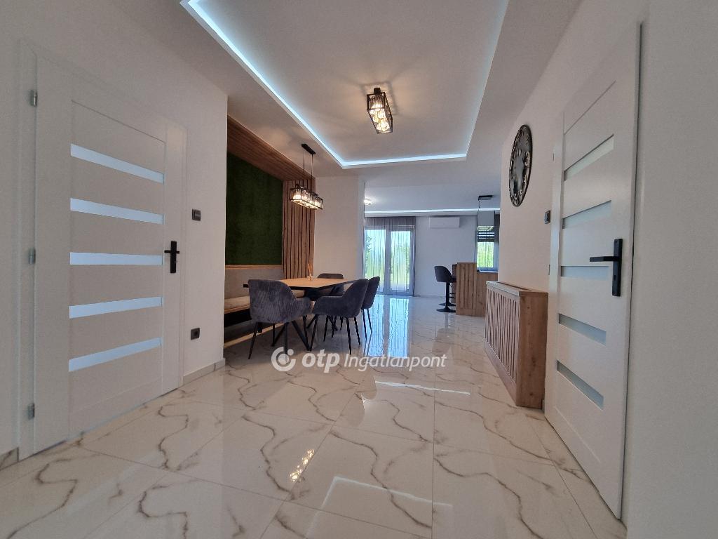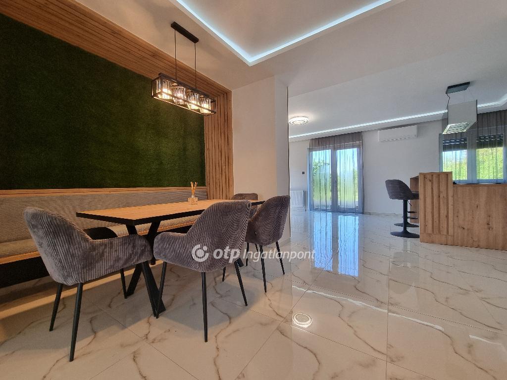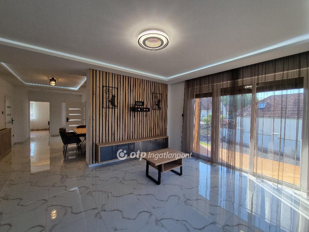 Páratlan lehetőség! Hivjon és vásárolja meg álmai otthonát vagy szabadidő eltöltésére hétvégi házát, illetve, ha falusi turizmusban gondolkodik vendégházát! Eladásra kinálok egy teljesen felújított okos otthont, Veszprém megyében, Pápa közelében Döbröntén. Remek elrendezés, igényesség, termémészetközeli programok. Döbrönte kis bakonyi zsákfalu, Veszprém megye nyugati szélén Pápától délkeleti irányban, az Észak-Bakony lankás dombvidékén, a Bittva-patak völgyében, kedvelt kirándulóhelyek, turista útvonalak szomszédságában. A tömegközlekedést a menetrendszerű autóbusz járatok biztosítják. Veszprémtől 40 perc, Pápától 15 perc autóútra található. A településen az infrastruktúra teljes körű. A közoktatás intézményei Pápakovácsiban találhatók. A faluban egy élelmiszerbolt és egy csárda (Szarvaskő Csárda) egy hotel (Hasik hotel), működik, a falu fölött magasodó középkori ?várhegy? oldalán az 1980-as években sípályát is kialakítottak. A 1780 m2-es, parkosított telken található, teljesen felújított, új bútorokkal berendezett okos otthon 3 szintre különül, egy hangulatos napfényes, amerikai konyhás nappaliból léphetünk ki a két oldalon csatlakozó teraszokra, kilátással a környékre, étkező, két lakószoba, gardróbszoba, egyedi fürdőszoba és külön Wc, közlekedő, előszoba található a földszinti részen. A konyha, praktikus: önbehúzós fiókok, süllyeszthető konnektorok, USB portok, beépített modern gépek jellemzik. A fürdőszoba kényelmes, nagyméretű, dupla mosdókagylós. A földszintről a bejáratnál juthatunk fel az egybefüggő emeletre, ami lakószobának, de egyéb funkciókra, mint edzőterem is kiválló, mindez az új tulajdonos fantáziájára van bízva miképp hasznosítja. Az épület egyrésze alatt 3 helyiségre különülő pince kapott helyet, itt van elhelyezve az új, 120 literes villanybojler és a központi vízlágyító. Az udvaron egy 30 m2-es garázs található. Az ingatlan fűtésről új kondenzációs gázkazán gondoskodik, a középső szinten radiátor hőleadókkal, a tetőtérben padlófűtéssel, a nappaliban 5 kW-os hűtő-fűtő klíma is helyet kapott. Az ablakok árnyékolásáról elektromos zsalúzia gondoskodik, ami telefonról irányítható. Okos otthonként a világítás és a ház hűtése és fűtése is telefonról vezérelhetők. Az 1986-ban épült ház teljes felújításon esett át, a ház 4 cm-es szigetelt szendvicspanel borítást és Dryvit homlokzatot kapott. A tető 6 cm-es szigetelt szendvicspanellel boritott. A teljes villany-, víz- és szennyvízhálózat cseréje megtörtént, a nyílászárók háromrétegű műanyag ablakokra lettek cserélve, elektromos zsalúziával. Az udvar részben térkövezett részben parkositott, amelyet kétoldalt betonkerítés, hátul 3D-s fém kerítés határol utcafrontról elektromos kapuval. Az ingatlan paramétereit tekintve tökéletes egy családi háznak vagy akár üzleti szempontból is jó befektetés lehet, akár vendégházról, panzióról vagy lakás kiadásról legyen szó. Az OTP Ingatlanpont teljes körű ügyintézéssel áll az eladók és a vevők rendelkezésére. A kínálatunkból választott ingatlan finanszírozásához kedvezményes hitelkonstrukciót kínálunk. Otthon Start Hitelprogram. Az adásvételi szerződés megkötéséhez igény szerint megbízható ügyvédi közreműködést biztosítunk, és segítséget nyújtunk az adásvételhez kapcsolódó ügyek intézéséhez is. Az ingatlanról készült alaprajz, illetve fényképfelvételek az Otp ingatlanpont szellemi tulajdonát képezik. Amennyiben felkeltette érdeklődését az általam kínált ingatlan, keressen bizalommal. Ne habozzon tovább, hiszen ez a ház valóban páratlan lehetőséget kínál! SZEREZZE MEG EZT A MODERN ÉS STÍLUSOS OTTHONT, HÍVJA MOST A MEGADOTT TELEFONSZÁMOT, ÉS LÉPJEN KÖZELEBB ÁLMAI OTTHONÁHOZ!