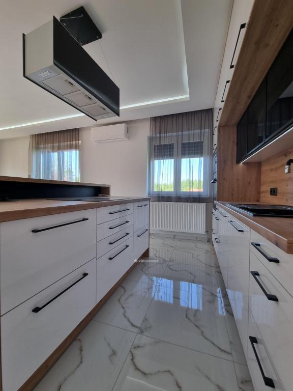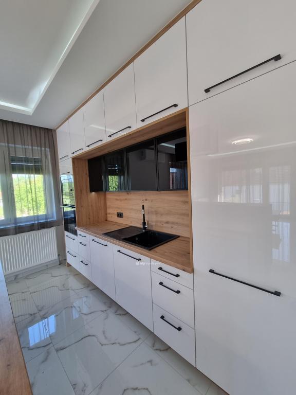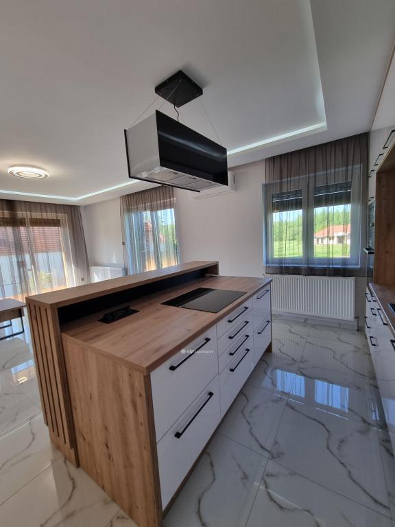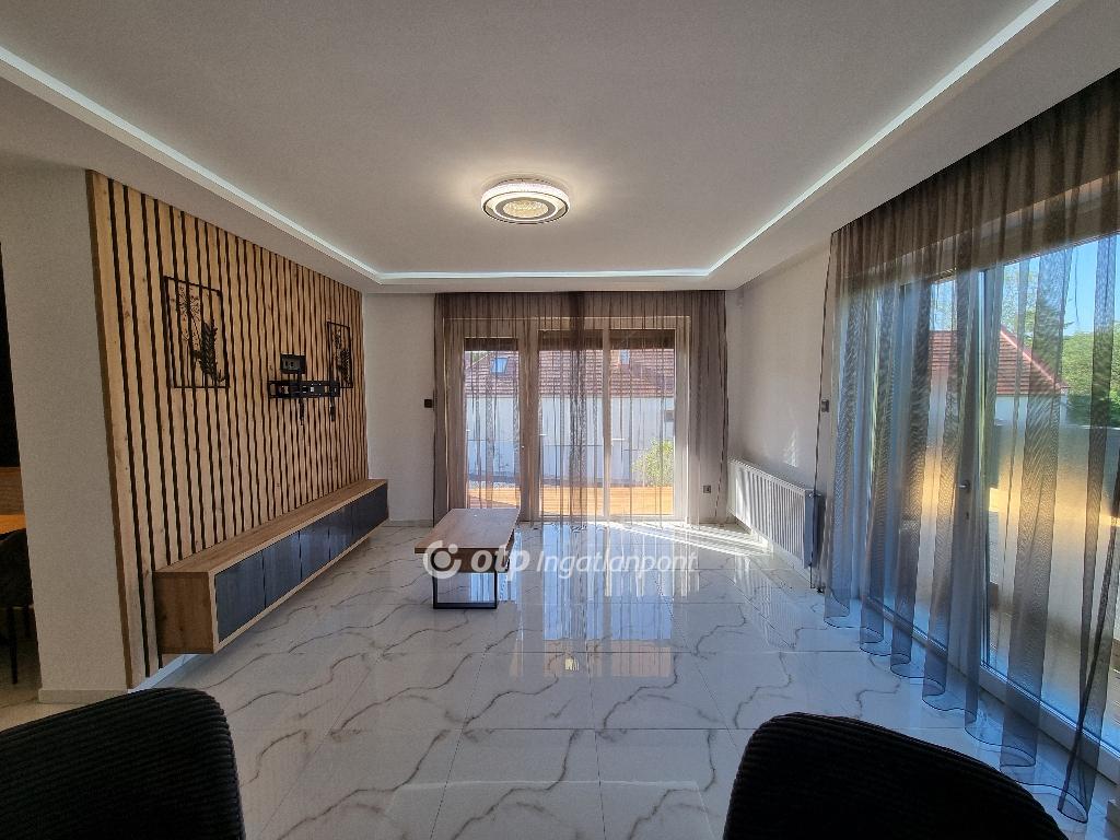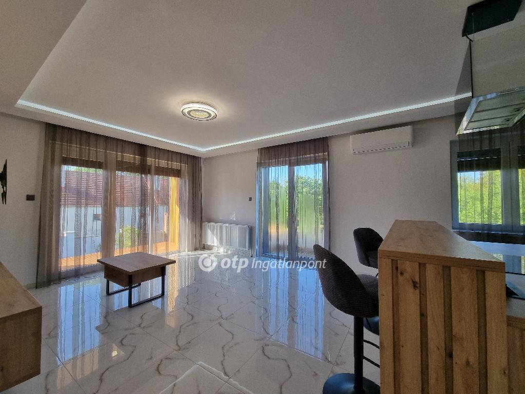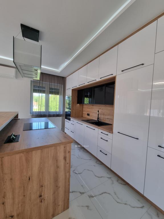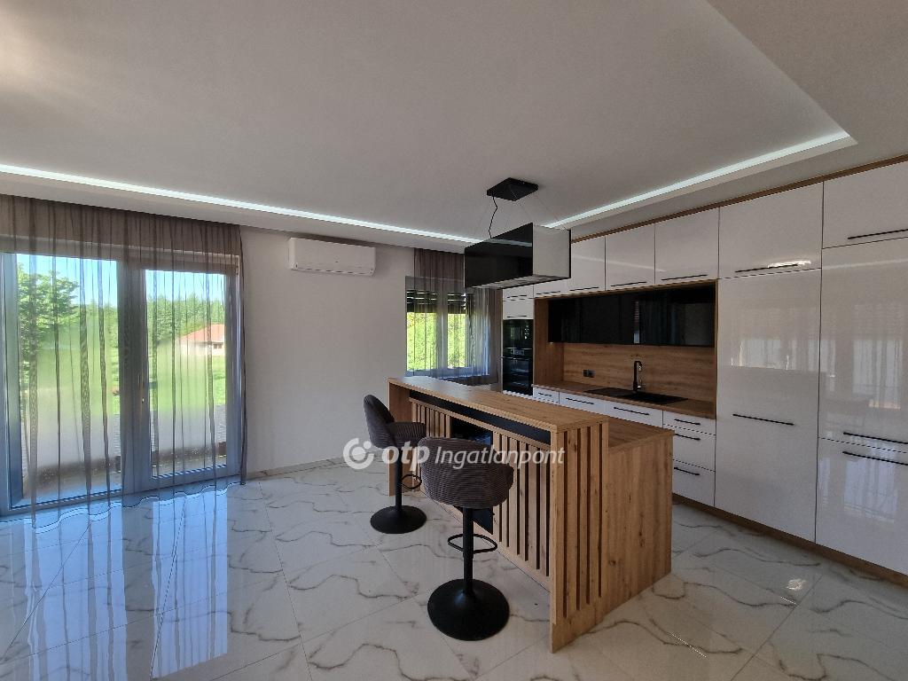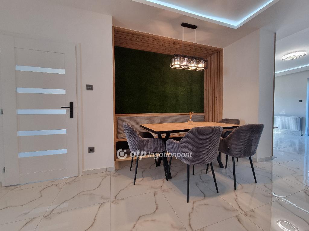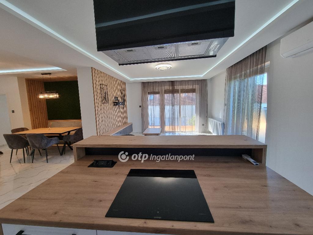 Páratlan lehetőség! Hivjon és vásárolja meg álmai otthonát vagy szabadidő eltöltésére hétvégi házát, illetve, ha falusi turizmusban gondolkodik vendégházát! Eladásra kinálok egy teljesen felújított okos otthont, Veszprém megyében, Pápa közelében Döbröntén. Remek elrendezés, igényesség, termémészetközeli programok. Döbrönte kis bakonyi zsákfalu, Veszprém megye nyugati szélén Pápától délkeleti irányban, az Észak-Bakony lankás dombvidékén, a Bittva-patak völgyében, kedvelt kirándulóhelyek, turista útvonalak szomszédságában. A tömegközlekedést a menetrendszerű autóbusz járatok biztosítják. Veszprémtől 40 perc, Pápától 15 perc autóútra található. A településen az infrastruktúra teljes körű. A közoktatás intézményei Pápakovácsiban találhatók. A faluban egy élelmiszerbolt és egy csárda (Szarvaskő Csárda) egy hotel (Hasik hotel), működik, a falu fölött magasodó középkori ?várhegy? oldalán az 1980-as években sípályát is kialakítottak. A 1780 m2-es, parkosított telken található, teljesen felújított, új bútorokkal berendezett okos otthon 3 szintre különül, egy hangulatos napfényes, amerikai konyhás nappaliból léphetünk ki a két oldalon csatlakozó teraszokra, kilátással a környékre, étkező, két lakószoba, gardróbszoba, egyedi fürdőszoba és külön Wc, közlekedő, előszoba található a földszinti részen. A konyha, praktikus: önbehúzós fiókok, süllyeszthető konnektorok, USB portok, beépített modern gépek jellemzik. A fürdőszoba kényelmes, nagyméretű, dupla mosdókagylós. A földszintről a bejáratnál juthatunk fel az egybefüggő emeletre, ami lakószobának, de egyéb funkciókra, mint edzőterem is kiválló, mindez az új tulajdonos fantáziájára van bízva miképp hasznosítja. Az épület egyrésze alatt 3 helyiségre különülő pince kapott helyet, itt van elhelyezve az új, 120 literes villanybojler és a központi vízlágyító. Az udvaron egy 30 m2-es garázs található. Az ingatlan fűtésről új kondenzációs gázkazán gondoskodik, a középső szinten radiátor hőleadókkal, a tetőtérben padlófűtéssel, a nappaliban 5 kW-os hűtő-fűtő klíma is helyet kapott. Az ablakok árnyékolásáról elektromos zsalúzia gondoskodik, ami telefonról irányítható. Okos otthonként a világítás és a ház hűtése és fűtése is telefonról vezérelhetők. Az 1986-ban épült ház teljes felújításon esett át, a ház 4 cm-es szigetelt szendvicspanel borítást és Dryvit homlokzatot kapott. A tető 6 cm-es szigetelt szendvicspanellel boritott. A teljes villany-, víz- és szennyvízhálózat cseréje megtörtént, a nyílászárók háromrétegű műanyag ablakokra lettek cserélve, elektromos zsalúziával. Az udvar részben térkövezett részben parkositott, amelyet kétoldalt betonkerítés, hátul 3D-s fém kerítés határol utcafrontról elektromos kapuval. Az ingatlan paramétereit tekintve tökéletes egy családi háznak vagy akár üzleti szempontból is jó befektetés lehet, akár vendégházról, panzióról vagy lakás kiadásról legyen szó. Az OTP Ingatlanpont teljes körű ügyintézéssel áll az eladók és a vevők rendelkezésére. A kínálatunkból választott ingatlan finanszírozásához kedvezményes hitelkonstrukciót kínálunk. Otthon Start Hitelprogram. Az adásvételi szerződés megkötéséhez igény szerint megbízható ügyvédi közreműködést biztosítunk, és segítséget nyújtunk az adásvételhez kapcsolódó ügyek intézéséhez is. Az ingatlanról készült alaprajz, illetve fényképfelvételek az Otp ingatlanpont szellemi tulajdonát képezik. Amennyiben felkeltette érdeklődését az általam kínált ingatlan, keressen bizalommal. Ne habozzon tovább, hiszen ez a ház valóban páratlan lehetőséget kínál! SZEREZZE MEG EZT A MODERN ÉS STÍLUSOS OTTHONT, HÍVJA MOST A MEGADOTT TELEFONSZÁMOT, ÉS LÉPJEN KÖZELEBB ÁLMAI OTTHONÁHOZ!
