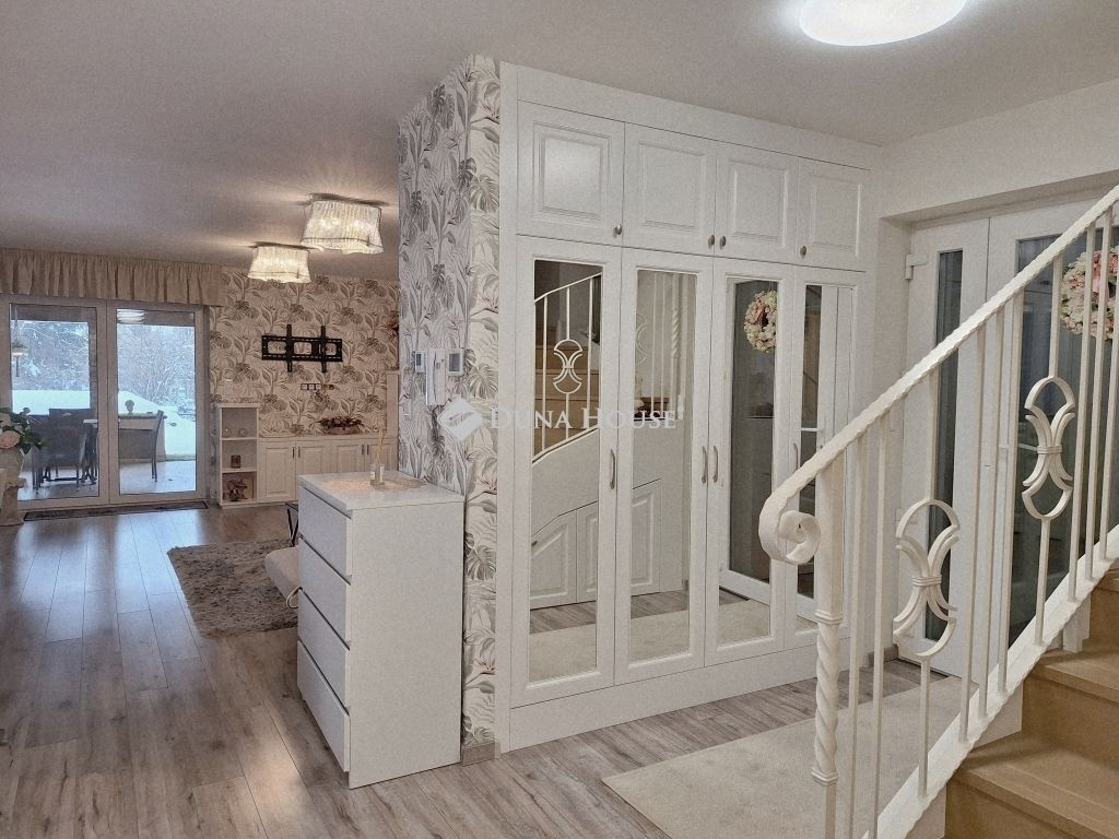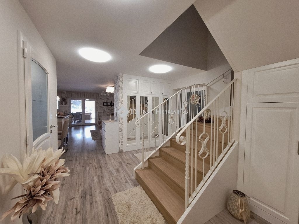 A szintek között belső lépcsőház biztosítja a kényelmes közlekedést.