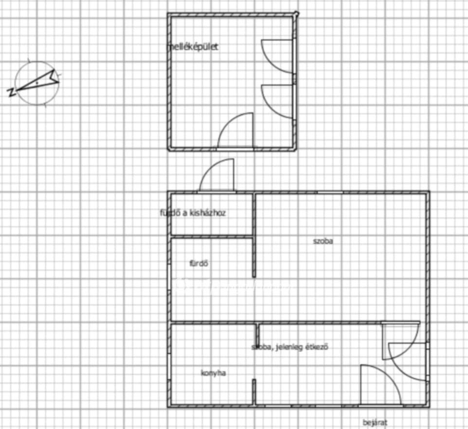 A kert másik hátsó részében egy 15 m2- es melléképület található beton aljzatok, felújítandó, de jó kialakítású,árammal ellátott. A főépület hátsó részében ehhez a kis házhoz tartozik egy külőn fürdő. Bojler, víz működik, wc még nincs a helyén újítgatásra szorul. De a kis épülettel együtt ha befejezésre kerül, kiadásra tökéletes lehet.
