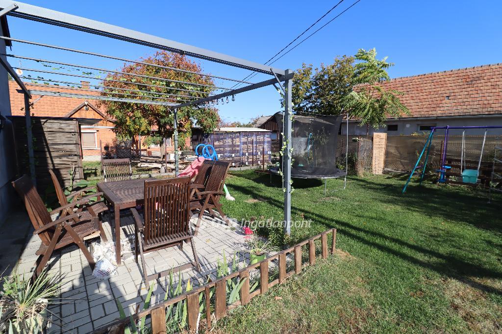 Dunegyházán eladó egy felújított, szigetelt, téglából épült családi ház, amelyhez minden oldalról kerítéssel védett, 422 m2 nagyságú udvar tartozik. Az udvar egyik részén viacolorral burkolt terasz kínál kellemes helyszínt családi és baráti összejövetelekhez, másik része pedig az automata kapun keresztül autó beállására alkalmas.