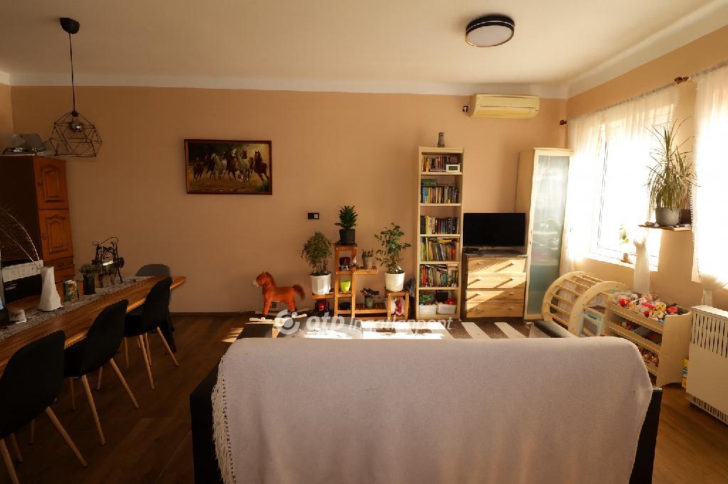 A két éve teljes körűen felújított, betonfödémes ház belső tere praktikus elrendezésű: előtér, nappali-étkező-konyha, hálószoba, fürdőszoba és WC biztosítja a kényelmet. A felújítás során megújult az elektromos és vízhálózat, új nyílászárók kerültek beépítésre, korszerű burkolatok készültek, valamint a kerítés is megújult. A homlokzatra 15 cm vastag hőszigetelés került, a tető kiváló állapotban van, a betonfödém pedig lehetőséget ad a tetőtér beépítésére. A házban vezetékes víz, áram és gáz áll rendelkezésre. A fűtést gázkonvektorok, a nyári hűtést klímaberendezés, a melegvíz-ellátást pedig okosbojler biztosítja. A masszív,vastag falaknak a betonfödémnek és a külső szigetelésnek köszönhetően az ingatlan alacsony rezsiköltséggel fenntartható.