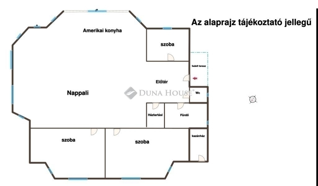 Az ingatlan jó elosztású világos terekkel rendelkezik és otthonos lakókörnyezetet biztosít. A házban több szoba tágas amerikai konyhás nappali fürdőszoba található amelyek praktikus elrendezése megkönnyíti a mindennapi életet.