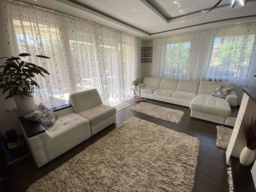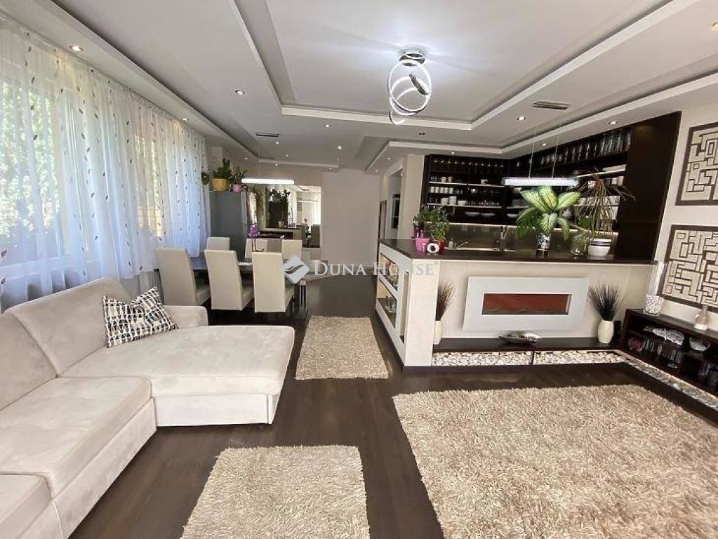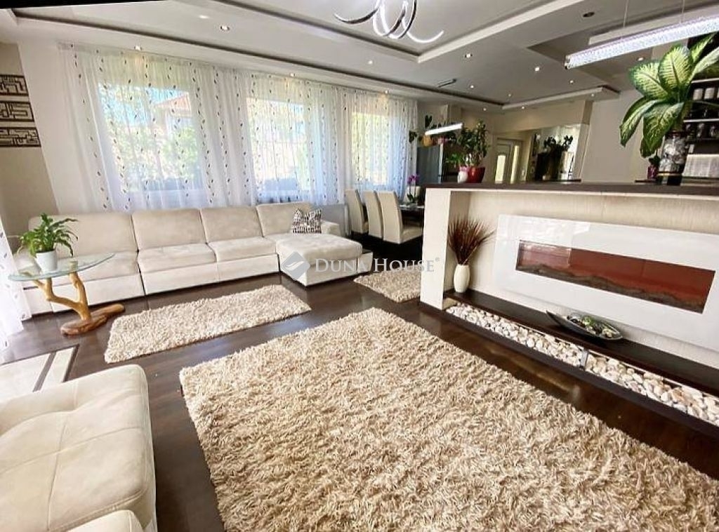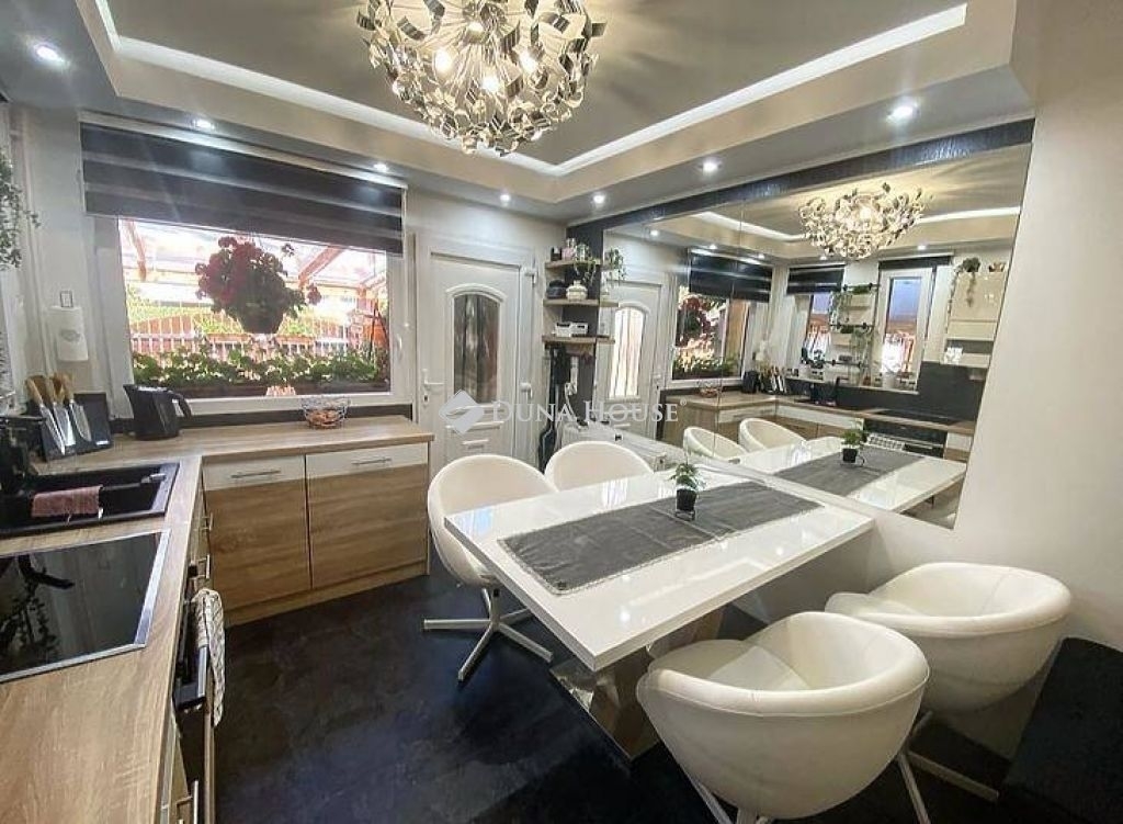 A ház 380 m2-es telken áll, jelenleg 2 lakrészből áll, összesen bruttó 165 m2, 6 szobával és egy 17 m2-es fedett terasszal rendelkezik, dupla komfortos, szép világos, kellemes, otthonos, jó terekkel rendelkező, igény szerint akár tovább alakítható,