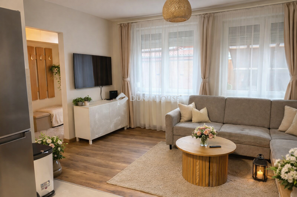 Eladó egy 50,04 m²-es, 2 félszobás ikerházfél a közkedvelt Nyugati Lakóparkban,Dunavarsány szívében! Az ingatlan egy 4 lakásos társasházként nyilvántartott ikerházfél, amely ideális választás lehet pároknak, kisgyermekes családoknak vagy akár idősebbeknek is. A praktikus elrendezésnek köszönhetően minden helyiség kényelmesen használható. Főbb jellemzők:50,04 m²-es lakótér, nappalikonyha, 2 félszoba, fürdőszoba, előszoba, kamra. Kiváló elhelyezkedés:A lakás Dunavarsány egyik legkedveltebb részén, a Nyugati Lakóparkban található, ahol minden fontos infrastruktúra karnyújtásnyira elérhető: boltok, közintézmények, orvosi rendelő, buszmegálló és játszótér is néhány perc sétára található. A ház műszaki jellemzői:Tégla építésű, beton sávalapra épült, betonfödémes (így akár tovább is bővíthető), masszív cserépfedéssel. Kert és udvar:A lakáshoz kis, privát kert tartozik, amely rendezett, füvesített, térkövezett kocsibeállóval rendelkezik. Az utcafronton kovácsoltvas kapu található, a kert pedig kútról öntözhető, így fenntartása gazdaságos. Megtekintés rugalmasan megoldható: hétköznap munkaidő után, valamint hétvégén előre egyeztetett időpontban.