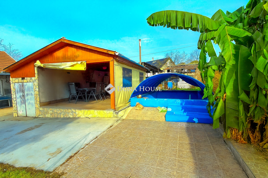 Közvetlenül mellette található a pince lejárata és egy világítással ellátott, épített medence, amely garantáltan a család kedvence lesz