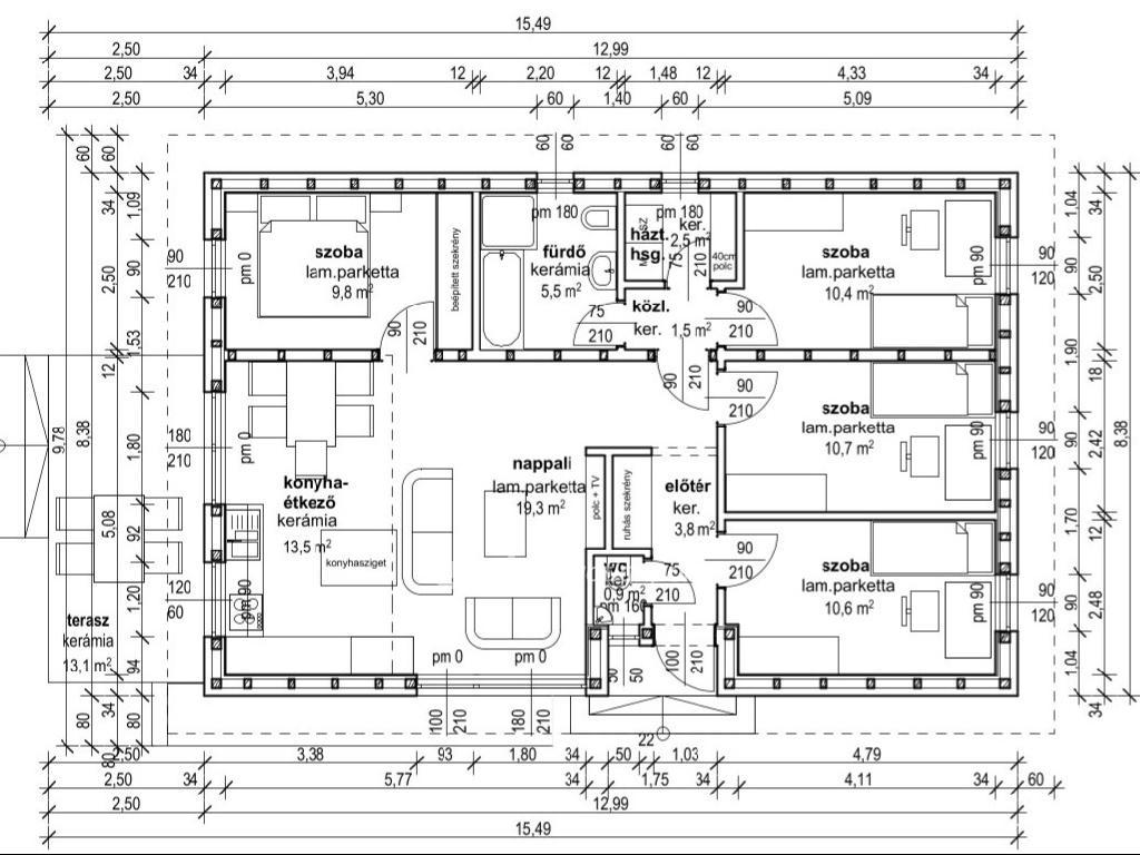 Az ingatlan kialakítása praktikus és kényelmes, megfelel a mai családok igényeinek. A házban 4 szoba, világos amerikai konyhás nappali, fürdőszoba WC-vel, külön WC, valamint egy tágas, fedett terasz kap helyet, ami tökéletes kikapcsolódási lehetőséget nyújt a család számára. A telken udvari gépkocsi-beálló kapott helyet, ugyanakkor igény szerint kétállásos garázs is kialakítható.