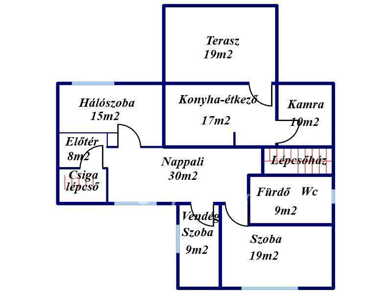 Szobák: 7, konyha: 2, fürdőszoba: 2, és WC: 2,tároló helyiségek, erkély, mindkét szinten.