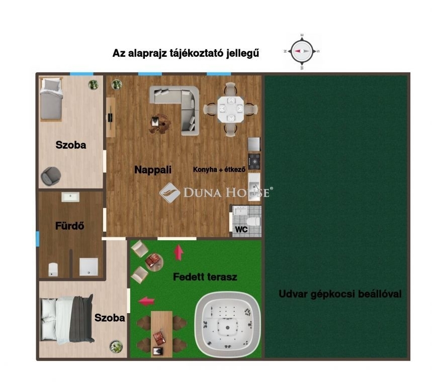 A 20 m² -es fedett terasz valódi pluszt ad az ingatlanhoz: kiválóan alkalmas pihenésre, baráti vagy családi összejövetelekre, szabadtéri étkezésekre, egy jakuzzival akár wellness tér kialakítására is.