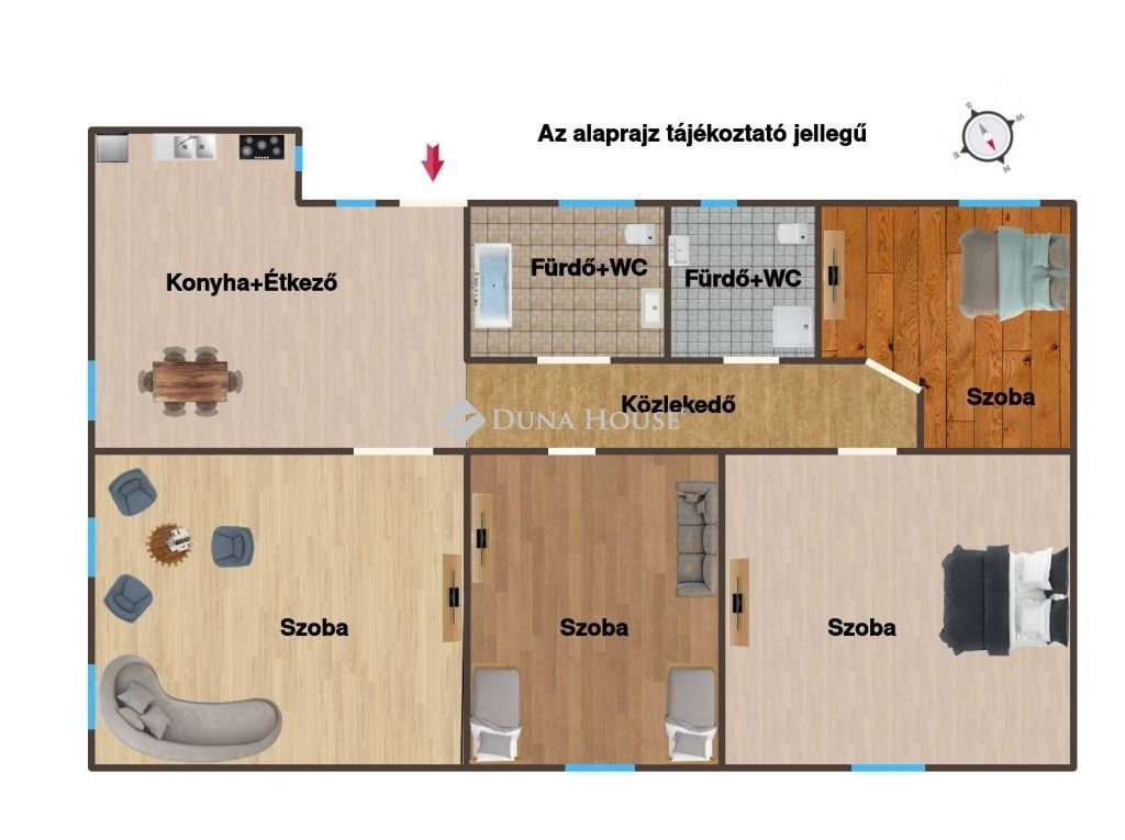 A tágas terek, a négy teljes értékű szoba, az étkezőkonyha egysége és a két egymás melletti fürdőszoba ritka kombinációt alkotnak ideális nagycsaládosoknak, két generáció együttélésére, vagy akár befektetőknek, akik többfunkciós hasznosításban gondolkodnak.
