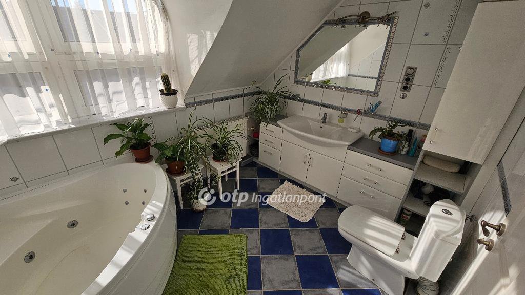 Heves megye, Eger, Gerinc utca, 141 nm-es ikerházrész eladó. A 2002-ben, téglából épült, belső kétszintes ingatlan alsó szintjén tágas nappali, konyha, étkező, zuhanyzós fürdőszoba, kamra, előszoba, garázs és a teraszon keresztül megközelíthető kis udvar található. Az emeleten három hálószobát, gardróbot, fürdőszobát és közlekedőt alakítottak ki. A fűtésről cirkó gázkazán gondoskodik, radiátorok segítségével. Ablakai az alsó szinten műanyagok, a nappaliban redőnnyel szereltek. Az emeleten fából készült, Velux tetőtéri nyílászárókat építettek be, amiket sötétítővel láttak el. A komfortérzetet két, 2023-ban felszerelt klíma növeli. A vezetékes víz vízlágyító/szűrő berendezésen keresztül érkezik az ingatlanba. A tulajdoni lapon lakásként nyilvántartott ikerházrész jó állapotú, tisztasági festést, illetve egyéni igényeknek megfelelő átalakítást követően költözhető. Kialakításának, méretének és elhelyezkedésének köszönhetően ideális otthona lehet akár többgyermekes családnak is. Felkeltették érdeklődését a leírtak? Egyeztessünk egy személyes megtekintés lehetőségéről! Ingatlanirodánk ügyvédi háttérrel, babaváró hitel, CSOK plusz, valamint kamatkedvezményes hitel ügyintézésével támogatja ügyfelei ingatlanvásárlását! Hibás hirdetés bejelentése