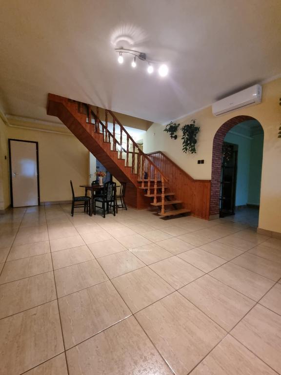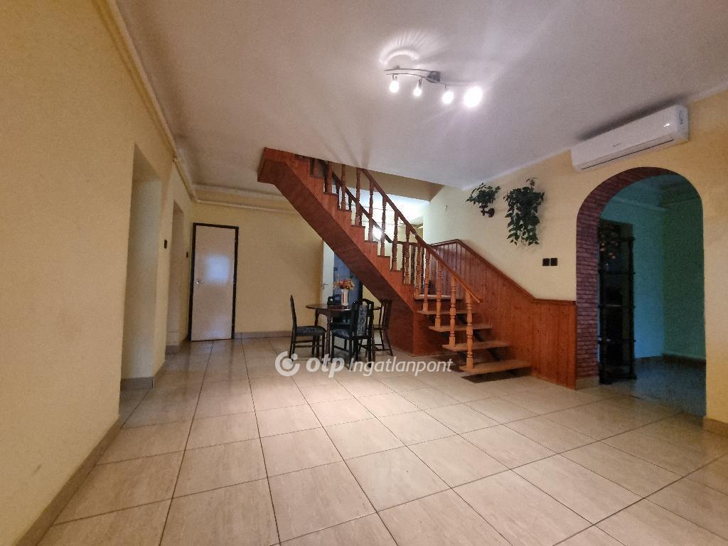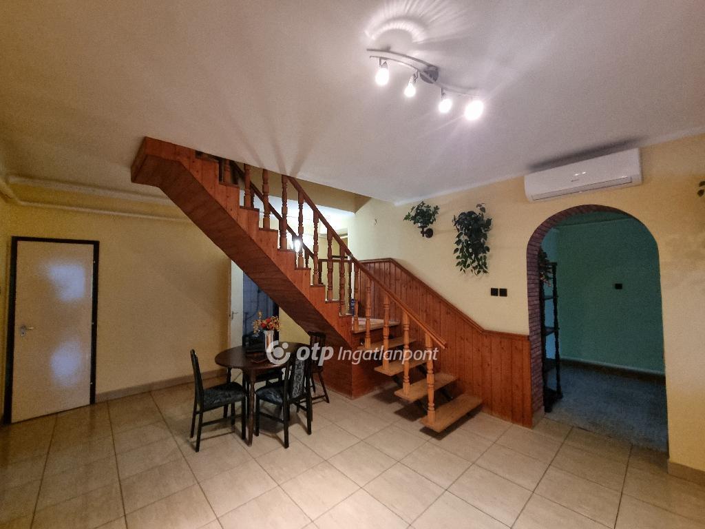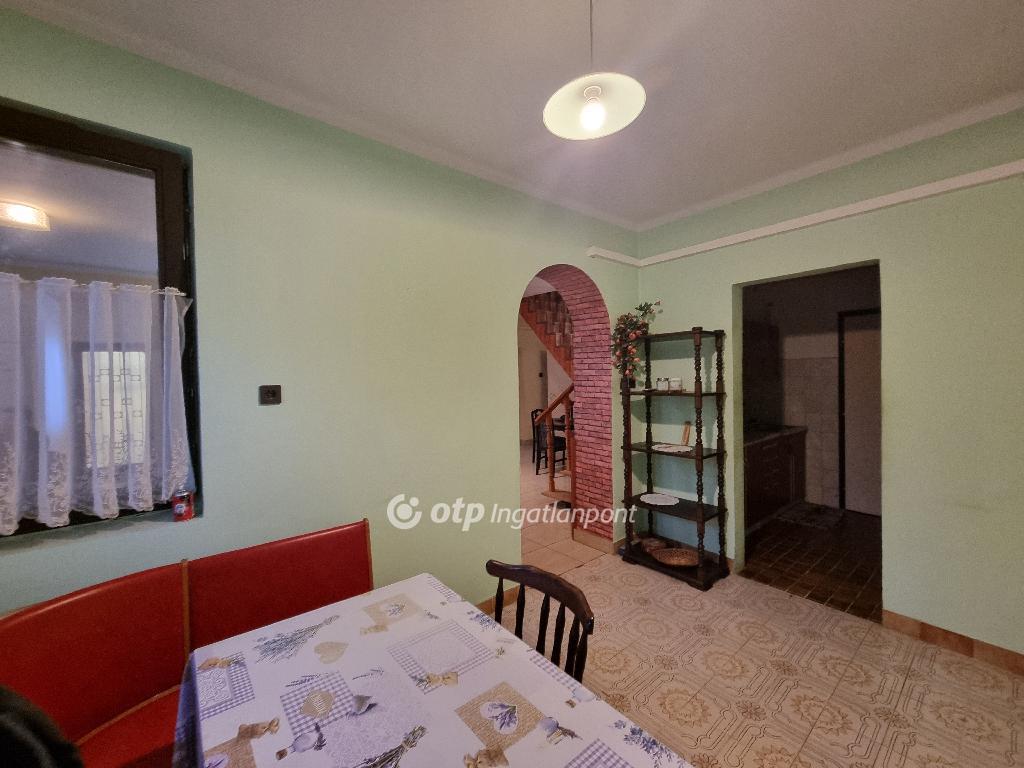 Eladásra kínálok Egyházaskesző csendes, természetközeli részén egy 174,06 m2-es, remek elrendezésű, igazán otthonos kétszintes 1990-ben épült családi házat, 1 354 m2-es telken. A település Pápától 20 km-re északnyugatra fekszik a Rába-folyó árterében. A Pápa-Csorna vasútvonal Rábahíd megállója 2 km-re van. A ház elhelyezkedése szempontjából meglehetősen jó adottságokkal rendelkezik, tágas, világos terek és nagy udvar tartozik hozzá. Elosztását tekintve áll két tágas, világos napaliból, 3 teljes értékű, külön bejáratú szobából, 1 kívülről erkély kapcsolatos szobából, étkezőből, konyhából, kamrából, két fürdőszobából, WC-ből, közlekedő helyiségekből és fedett teraszból, szépfogóból. A lenti és az emeleti lakóteret egy gyönyörű, lépcső köti össze. A helyiségek burkolata: szobák laminált parketta, a többi helyiség járólap boritású. A ház további részében 2 autóbeállós garázs, kazánház, nyárikonyha, és tároló helységek foglalnak helyet. A nyílászárók jó állapotúak, redőnnyel felszereltek. A ház melegéről egy vegyes tüzelésű kazán gondoskodik, radiátoros hőleadással valamint hűtő-fűtő klíma. A meleg vizet villanybojler biztosítja. Kert része füvesített, az udvar teljesen rendezett, körbekeritett, gyümölcsfákkal, magas-ágyáson művelt veteményes kerttel, fúrt kúttal. A település nem messze található Pápától, Csornától és Győrtől. A környék kiváló közlekedési lehetőségekkel bír, a természetközeli környezet és a falusias nyugalom pedig ideális választás azoknak, akik békésebb életre vágynak, de szeretnének nagyobb városokhoz is közel lenni. Ajánlom mindazon vevők részére, akik egy szép, családias, nyugodt részen kívánnak élni, távol a város zajától. Az OTP Ingatlanpont teljes körű ügyintézéssel áll az eladók és a vevők rendelkezésére. A kínálatunkból választott ingatlan finanszírozásához kedvezményes hitelkonstrukciót kínálunk. Az adásvételi szerződés megkötéséhez igény szerint megbízható ügyvédi közreműködést biztosítunk, és segítséget nyújtunk az adásvételhez kapcsolódó ügyek intézéséhez is. Az ingatlanról készült alaprajz, illetve fényképfelvételek az Otp ingatlanpont szellemi tulajdonát képezik. Ne szalassza el ezt a lehetőséget, vásároljon meg az ingatlant! Hívjon ma!
