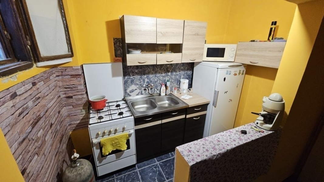 Eladó Előszállás csendes, nyugodt részén egy 52 négyzetméteres családi ház, amelyhez egy 1030 négyzetméteres telek tartozik. Az ingatlan vegyes falazatú, elosztása praktikus: két szoba, étkező, konyha, fürdőszoba és előszoba található benne. A ház fúrt kútról kapja a vizet, a szennyvíz elvezetése derítőbe történik, villany van, gáz azonban nincs bevezetve. A tágas udvar sok lehetőséget rejt magában, akár kertészkedésre, pihenésre vagy bővítésre is alkalmas. Az ingatlan tehermentes, kiváló választás lehet állandó otthonnak vagy hétvégi háznak is azok számára, akik csendes, természetközeli környezetre vágynak.Ha felkeltette érdeklődését az ingatlan, kérem, keressen bizalommal! Hibás hirdetés bejelentése