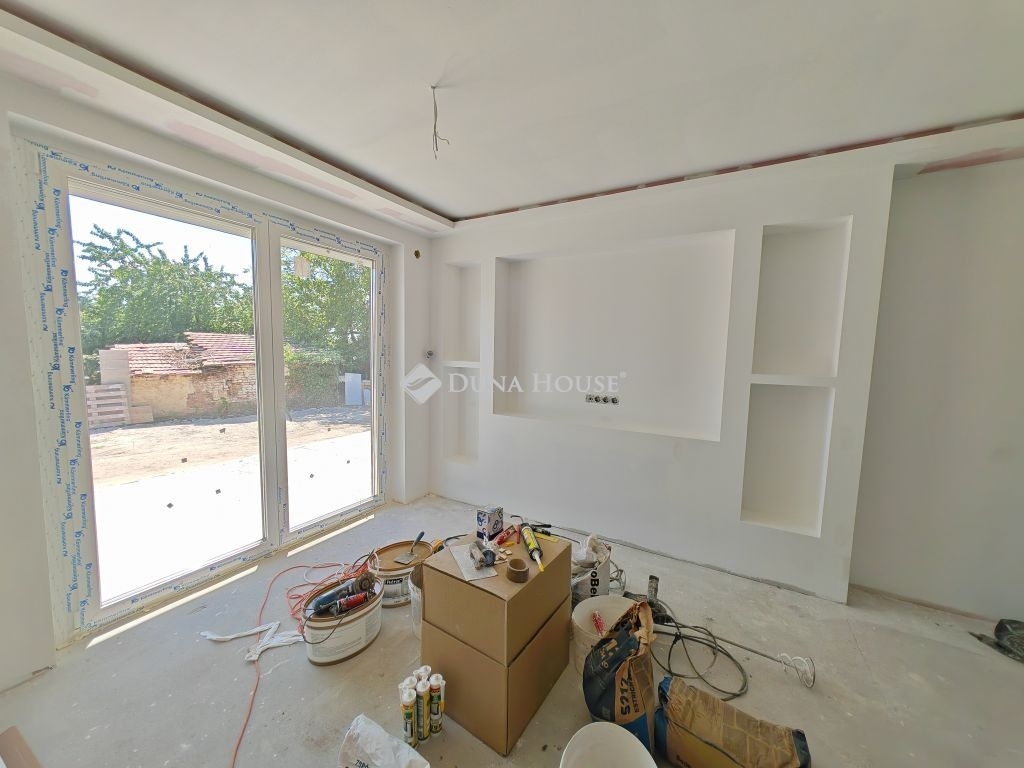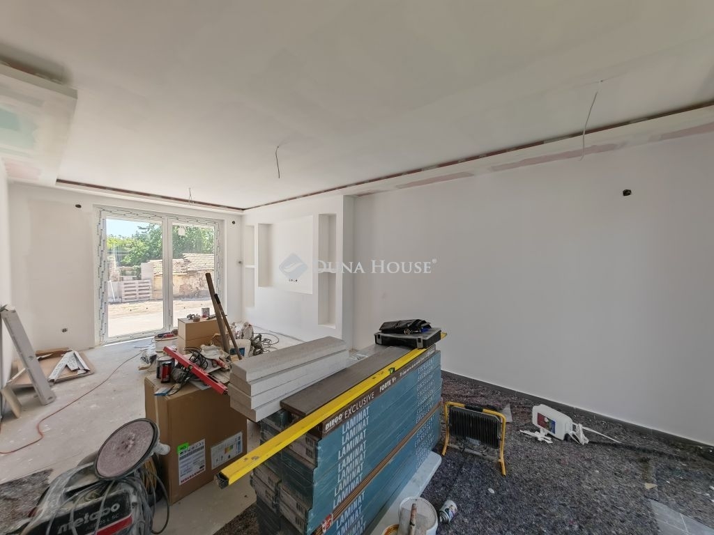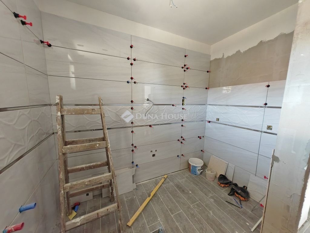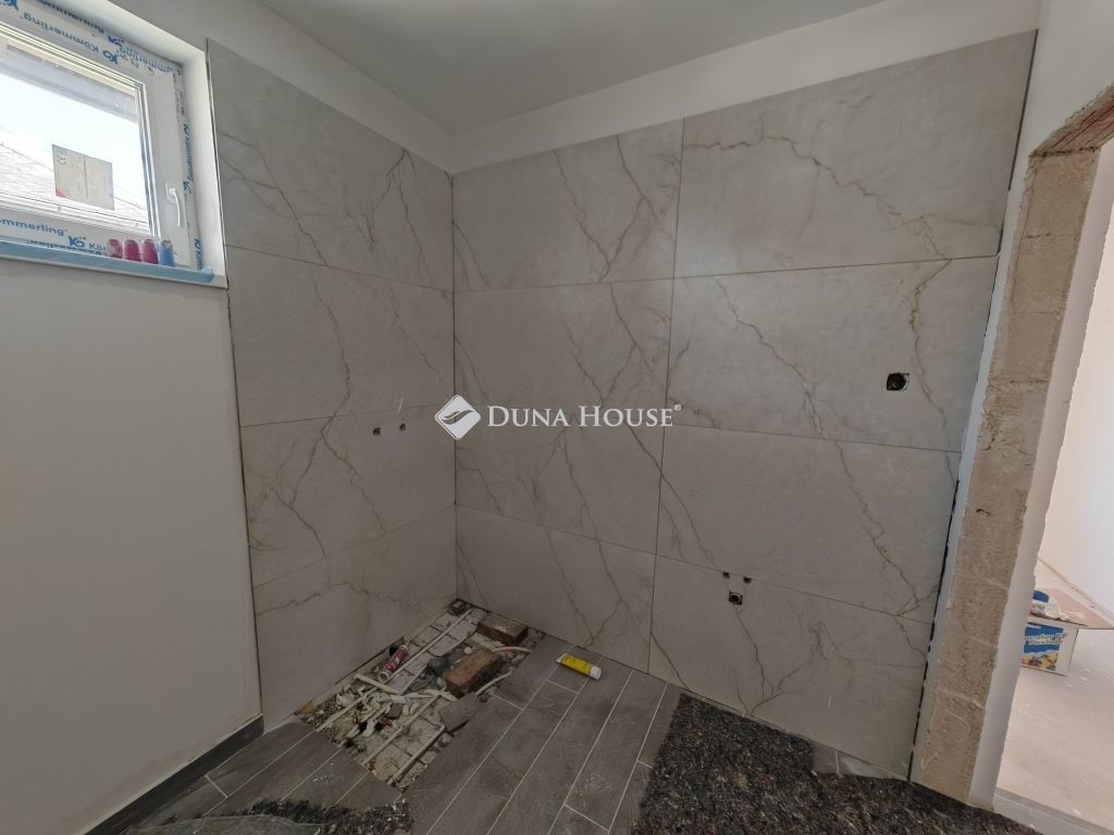 Az ikerház mindkét fele eladó még jelenleg, a képek között a jelen hirdetés a még burkolás alatt álló felet takarja. A másik fél már elkészült, 3 szoba + nappalival. A tulajdonos minőségi olasz burkolatokat használ.