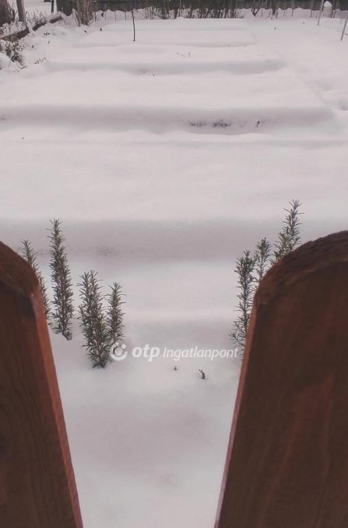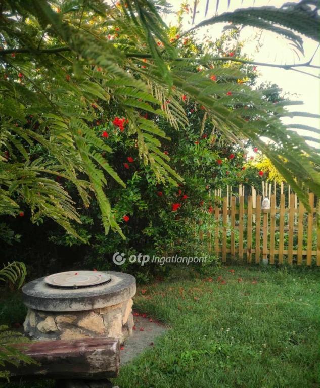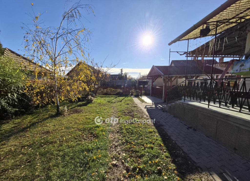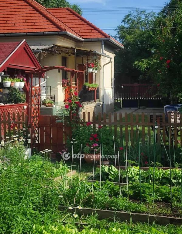 A tágas, 735 m2-es telek gondozott, a kertben kialakított veteményes található, ahol zöldségek termesztésére alkalmas ágyások lettek kialakítva.