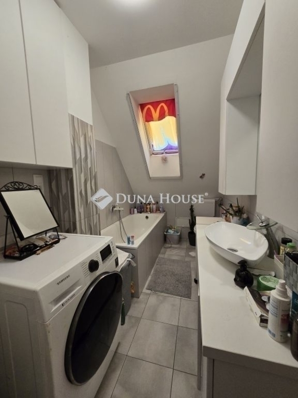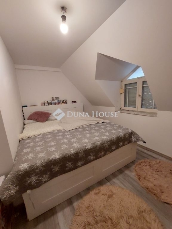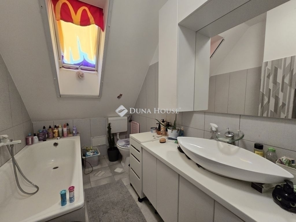 Eladó Érd központjában egy belső kétszintes, bruttó 114,27 nm-es házrész 250 nm-es kizárólagos használatú kerttel. Az ingatlan 2005-ben épült, 3 lakásos épület, melyben a lakások ügyvédi használati megosztással különülnek el egymástól. Minden közmű önálló mérőórával rendelkezik.Az ingatlan földszintjén egy előtér és a lépcsőház található. Az előtér hátsó kijárata vezet a kerítéssel leválasztott kb. 250 nm-es kertbe. Az emeleten előszoba, egy tágas amerikai konyhás nappali és három hálószoba található. Az egyik szoba erkélyes, a legnagyobb szoba pedig saját gardróbbal rendelkezik. Jelenlegi tulajdonosa 2021-ben vásárolta meg a lakást, akkor a tisztasági festés mellett a burkolatok kerültek felújításra, majd klímát szereltek be, két éve pedig egy tágas gardrób került kialakításra, ill. a fürdőszoba és a konyhapult is megújult. A Saunier Duval kondenzációs kazán még nincs egy éves.A kertben egy betonalapon álló faház segíti a tárolást, a kültéri medence pedig alku tárgya.Parkolni az utcán lehet.A lokáció tökéletes, gyakorlatilag gyalog elérhető minden szolgáltatás, több szórakozási lehetőség, közintézmény, ill. a vasútállomás és a buszmegálló szintén sétatávolságra van.
