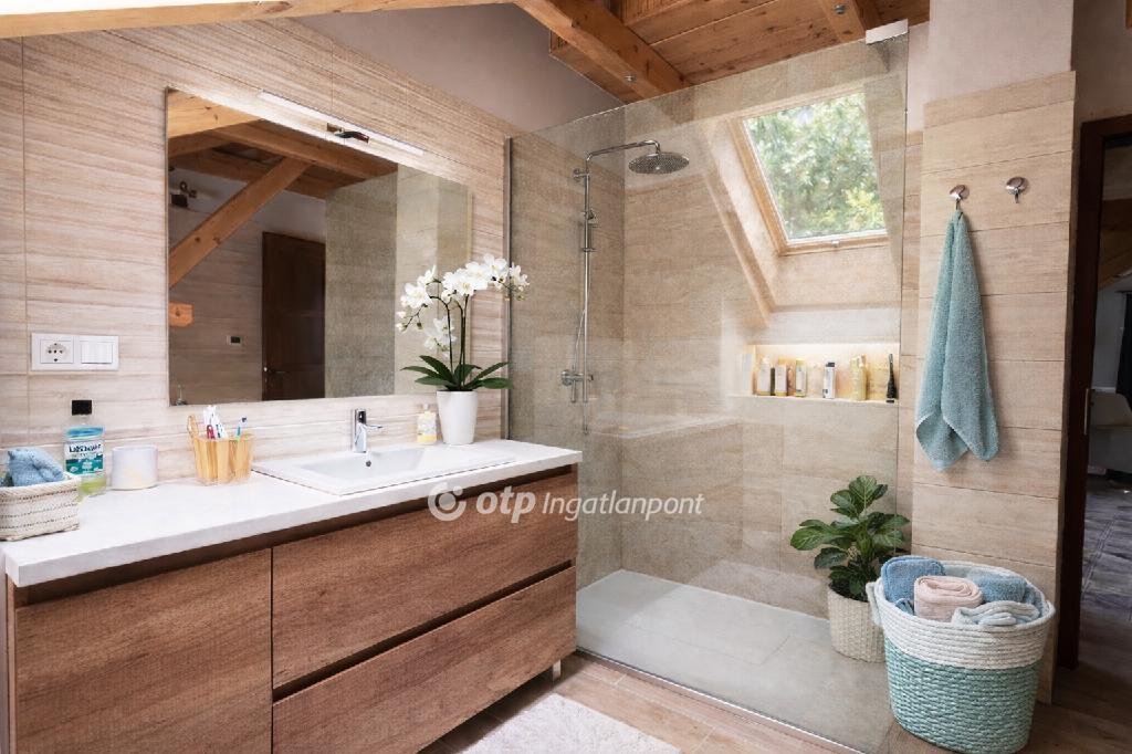 Tágas 170 nm-es, teraszos, erkélyes, pincés, gépkocsi beállós kétszintes családi ház eladó Érd Parkvárosban! Budapesti elsősorban XIII. kerületi, de akár VII. VI. VIII. IX. kerületi kisebb lakás beszámítása megoldható! Ha nyugodt, zöldövezeti környezetben keres új otthont, de fontos a jó közlekedés Budapest felé, akkor ez az ingatlan tökéletes választás! Főbb jellemzők: Telek területe: 897 nm, Hasznos alapterület: 170 nm, Teraszok összesen: 46 nm (27 nm a földszinten, 19 nm az emeleten), + 2 nm erkély az emeleten. Elrendezés és műszaki tartalom: A ház eredetileg a 70-es években épült B30-as téglából. A födémtől felfelé (gerendázat, héjazat és cserép) a tetőszerkezet 10 éve teljesen megújult, stabil és kiváló állapotú. Ugyanekkor került fel a 10 cm vastag külső hőszigetelés is, amely szintén jó állapotban van. Fa nyílászárók, dupla üvegezéssel. Alumínium szigetelt redőnyök (fa hatású kivitelben). Minden ablakon szúnyogháló. Riasztórendszer, ipari áram is rendelkezésre áll. Fűtési rendszer: Gázcirkó kazán (5 éves) Vegyes tüzelésű kazán, Padlófűtés a hidegburkolatos helyiségekben, Radiátoros fűtés a meleg burkolatos szobákban, Az emeleten a fürdőszobában elektromos padlófűtés, Légkondicionáló az emeleten, A ház alsó szintje 2000-ben teljes körű felújításon esett át (villany- és vízvezetékek), az emelet pedig 2020-ban lett modernizálva. A lakótér kb. 60%-a alatt pince található, ami tárolásra vagy műhely kialakítására is kiváló. Energetikai jellemzők: Az ingatlan ?B? energetikai besorolást kapott, amely a jelenlegi épületenergetikai követelményekhez közeli, gazdaságosan fenntartható állapotot jelent. A jó minőségű hőszigetelésnek és korszerű fűtési rendszernek köszönhetően alacsony rezsiköltséggel fenntartható. Kert és külső épületek: Gondozott, parkosított kert, teljesen intim hátsó udvar, nem belátható. Öntözőrendszerrel felszerelve. A telken található egy 2003-ban, eredeti pajta tervei alapján épült nagyméretű, jelenleg garázsként funkcionáló épület, kialakítása gépkocsi tárolására készült, akár 2 nagyobb vagy 3 kisebb autó is kényelmesen elfér benne. Az egyik pajtakapu elektromosan nyitható, távirányítóval. A bejárás szintén elektromos kapun keresztül történik. Közlekedés, Budapest elérhetősége: Autóval: az M7-es autópálya 2 perc alatt elérhető, így Budapest gyorsan megközelíthető. Tömegközlekedés: A közelben található autóbuszmegálló, ahonnan közvetlen járatok indulnak Budapest Kelenföld vagy Etele tér felé. Vonattal: Az Érd alsó vagy Érd felső vasútállomás könnyen elérhető, gyors bejutás a fővárosba. A környékről: Érd Parkváros közkedvelt, csendes, kertvárosias övezet, ahol kiváló az infrastruktúra és jó a közbiztonság. A közelben található több óvoda, iskola, élelmiszerbolt, gyógyszertár, valamint orvosi rendelő is. A környék ideális családosoknak és mindazoknak, akik zöldövezeti, nyugodt környezetet keresnek, de nem akarnak lemondani a városi kényelemről és Budapest gyors elérhetőségéről. Ez a ház ideális választás lehet: Tágas, otthont keresőknek, akik élveznék a kertvárosi nyugalmat, de fontos számukra Budapest közelsége. Ne hagyja ki ezt a lehetőséget! Ha szívesen megtekintené személyesen is ezt a gyönyörű, jól karbantartott otthont, keressen bizalommal! Referencia szám: M323372 Hibás hirdetés bejelentése