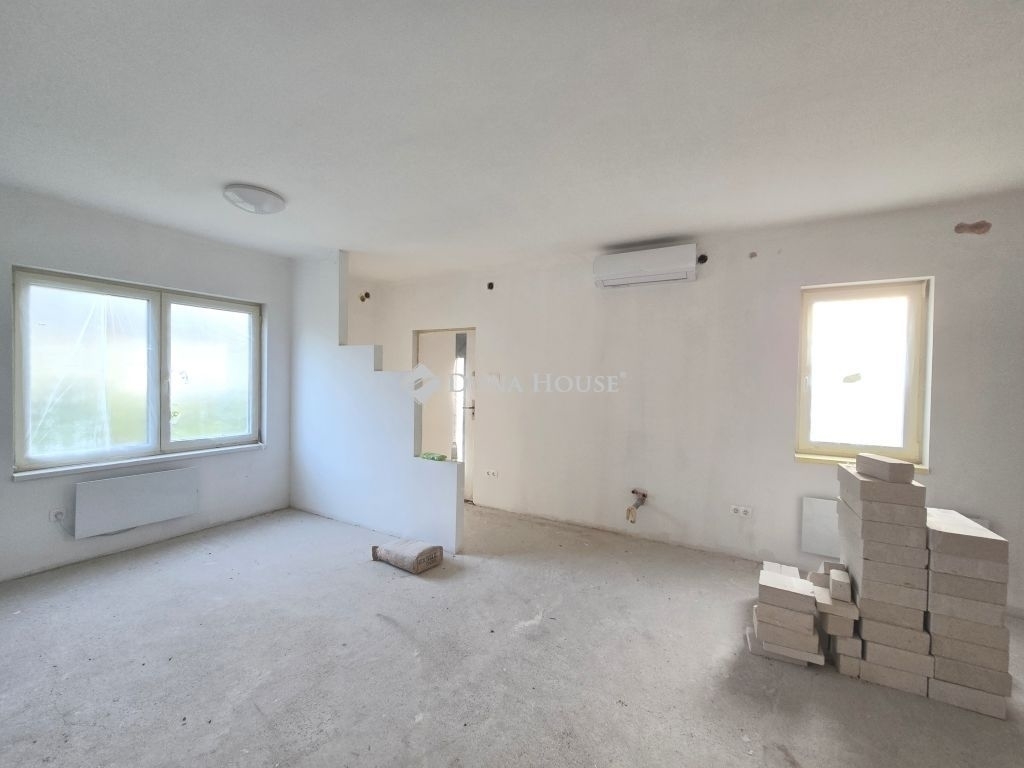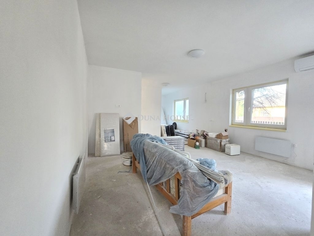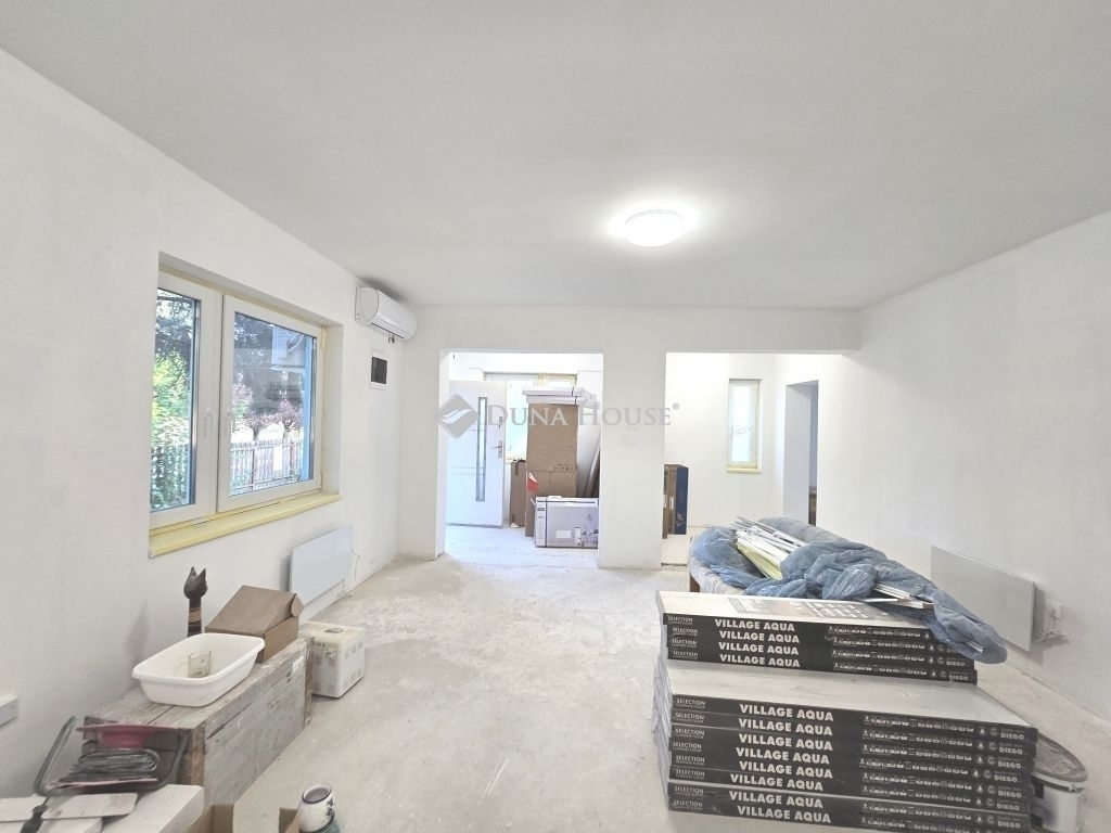 Eladó a Bagoly utcának a Kossuth Lajos utcához közel eső részén egy formás, széles utcafrontú 950 nm-es telken lévő felújítás alatt álló családi ház. Az ingatlan a 90-es évek elején épült, nettó 87,5 nm alapterületű és tovább bővíthető a 101 nm-es padlástér beépítésével. A stabil alapokra épült eredeti elrendezést a felújítás során újra gondolták a tulajdonosok és jelenleg két kisebb, külön bejárattal rendelkező garzonlakásból áll az épület. Az utcafronti garzon 46,4 nm-es, a hátsó lakás pedig 41,06 nm. Mindkettőnek hasonló az elrendezése: amerikai konyhás nappali, mely egyben hálószoba is, fürdőszoba, külön WC és tároló került kialakításra. Igény szerint visszaállítható az eredeti állapot, s ez esetben egy 3-4 szobás, konyhás, fürdőszoba és külön WC a legoptimálisabb alaprajz. A fűtést mindkét garzonban Nybro márkájú elektromos fűtőpanelek biztosítják, ill. egy-egy modern Gree klíma fűt és hűt. Az áramot külön villanyóra méri mindkét lakásban H tarifával. Opcióként gáz is van az ingatlanban. Az ár a jelenlegi állapotra vonatkozik: az ablakok és a két kültéri ajtó új, az összes víz- és villanyvezetéket kicserélték, állnak a válaszfalak, a vizesblokkok burkolása elkezdődött. A fűtőpanelek, a klímák, a burkolatok egy része és a törölköző szárítók szintén az ár részét képezik. A telek rendezett állapotban fog átadásra kerülni. A terület eredetileg Vt-1 es övezet volt, az új szabályozás szerint viszont Lke-2-es besorolás alá fog esni: oldalhatáros beépítés, 30 % -os beépíthetőség, 5 m-es épületmagasság, így az alapterület is bővíthető bruttó 285 nm-ig. A lokáció tökéletes: buszmegálló, élelmiszer bolt a közelben, Érd központja pár buszmegállóra található, a vasútállomás pedig kb. 10 perces sétára van.