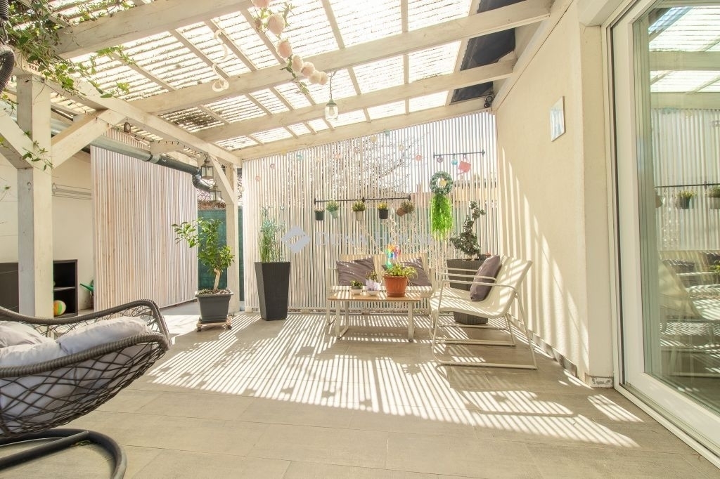 A gondosan kialakított, intim kert valódi pluszt ad az ingatlannak: parkosított zöldfelület, fedett autóbeálló két autó részére, kerti tároló és hangulatos pihenőrészek biztosítják a zavartalan kikapcsolódást.