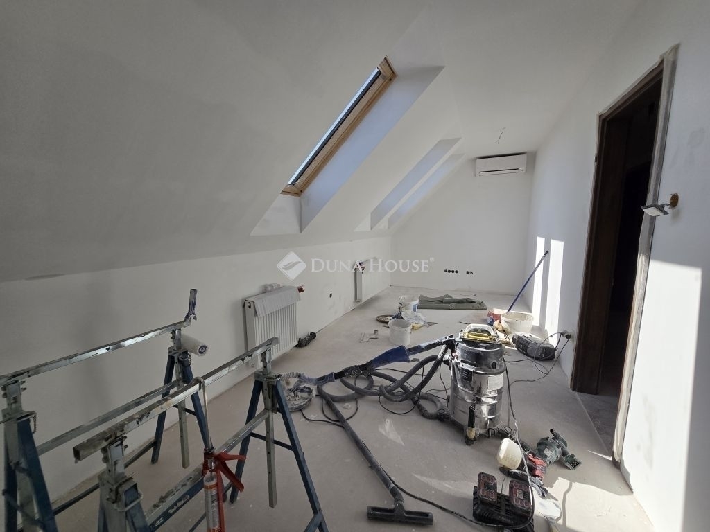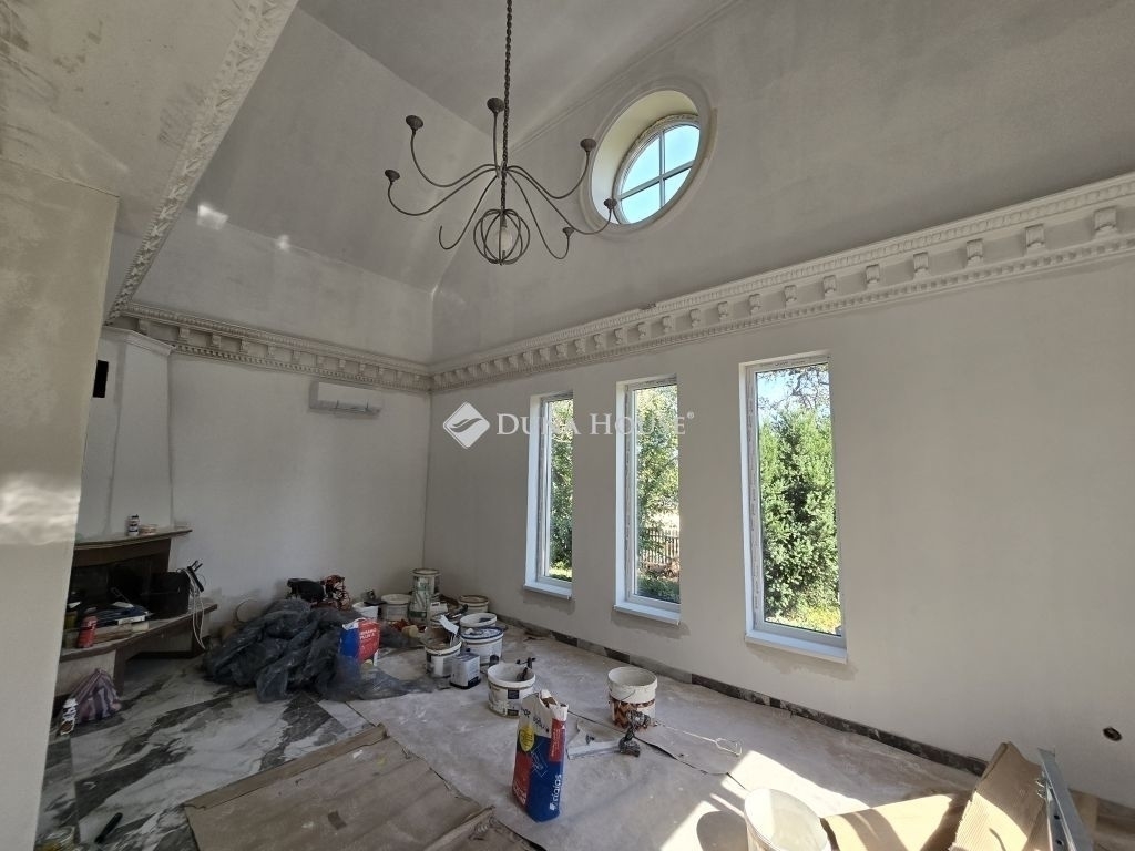 AHOL A NAGYPOLGÁRI ELEGANCIA ÉS A MODERN STÍLUS TALÁLKOZIK! UNIKÁLIS HÁZ ÉRD FENYVESÉBEN!Eladó Érd Fenyvesében egy 2002-ben épült NAGYSTÍLŰ, IMPOZÁNS TEREKKEL rendelkező belső kétszintes, 192,77 nm-es hasznos területtel rendelkező (165 nm-es lakótér + 36 nm-es hátsó terasz + 8,82 nm-es bejárati terasz és 27 nm-es garázs), nappali + 4 szobás családi ház. Az ingatlan jelenleg teljes körű felújítás alatt áll, az ár a kulcsrakész állapotra vonatkozik. Újak és korszerűek a vezetékek, a fűtésrendszer (kazán, padlófűtés csövezése és az osztó-gyűjtő, radiátorok), a nyílászárók, a klímák, a kandalló kéménye is szabványos bélelést kapott és minőségiek, a mai designt képviselik a burkolatok, a beltéri ajtók, a szaniterek és a gépesített konyhabútor. A terek lenyűgözők: a 3 méter belmagasságú földszinten csak a nappali az étkezővel több mint 60 nm-es, melyhez a DNy-i oldalon egy 36 nm-es terasz kapcsolódik. Az emelet tetőtéri, de az itt található szobák is tágasak, napfényesek és jól bútorozhatók.A kert mérete is impozáns, 1072 nm-es, széles, 19 m-es utcafronttal.Parkolni a ház alatt elhelyezkedő 27 nm-es garázsban lehet, mely egyben kazánház is.A lokáció tökéletes: buszmegálló 1-2 perc sétára, autóval a Bem téri Interspar kávézóval, postával, gyógyszertárral és egyéb szolgáltatásokkal 5 perc.