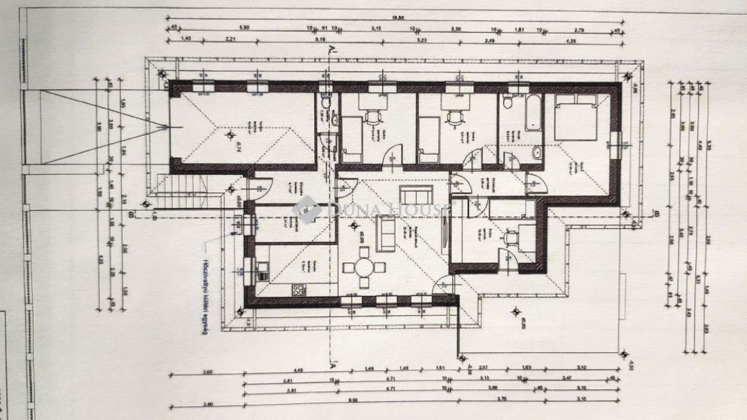Ez a különleges ingatlan egy 808 négyzetméteres telken helyezkedik, a ház 114 négyzetméteres belső hasznos alapterülettel büszkélkedhet.