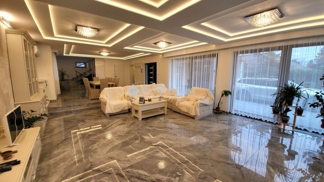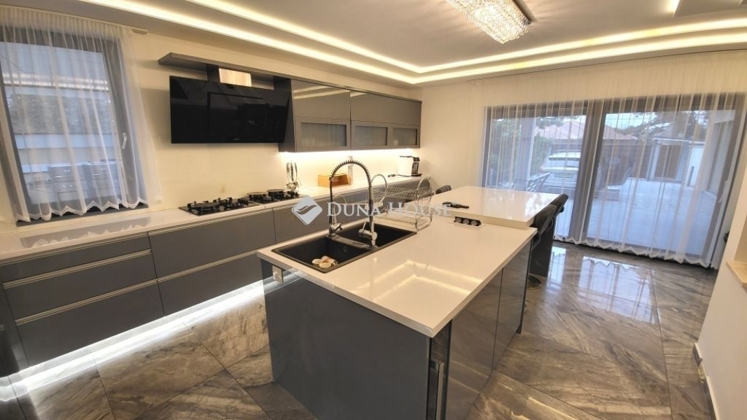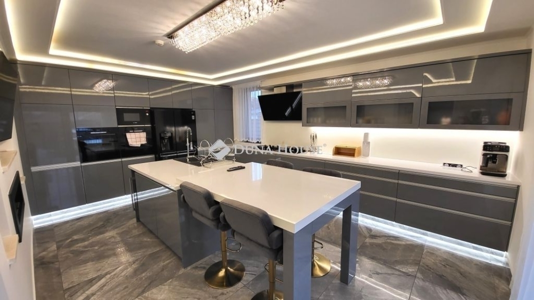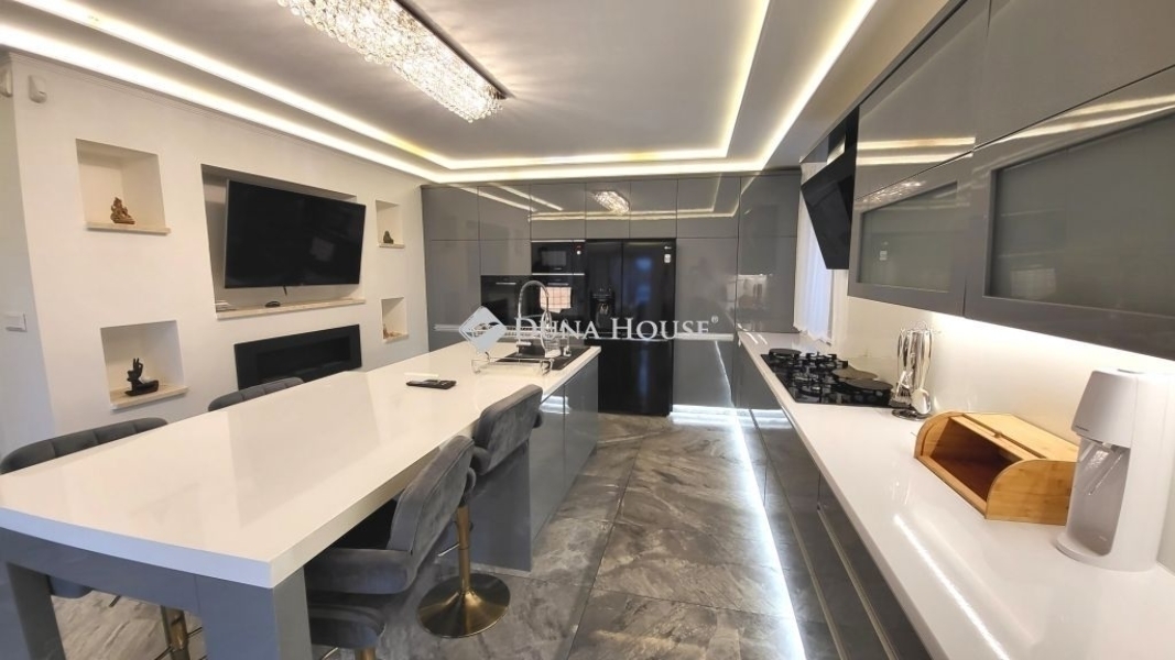 Eladásra kínálunk Érd Fenyves parkvárosban egy újszerű, 190 négyzetméter belső hasznos alapterületű, luxus családi házat. A csodálatos napfényes ingatlan egy 714 négyzetméteres telekkel büszkélkedik, melyhez egy hangulatos nyárikonyha is tartozik.Ez a prémium ingatlan tökéletes választás azok számára, akik nem hajlandóak kompromisszumot kötni sem az otthon kényelmét, sem annak luxusát illetően. Akár egy család álmai válnak valóra ebben a lenyűgöző ingatlanban, akár valaki igazán exkluzív környezetet keres magának és szeretteinek. Ne habozzon, keressen minket még ma, hogy megtekinthesse ezt a páratlan lehetőséget!Az otthon kényelmét növeli az elektromos redőnyök, a kamerarendszer és a központi porszívó rendszer kiépítése is, amit a modern kor elvárásainak megfelelően öt darab légkondicionáló egészít ki, így garantálva a kellemes hőmérsékletet a nyári kánikulában és a télies hűvös napokon egyaránt.Ez a különleges ingatlan három szobát és egy hatalmas, étkezős nappalit kínál, mellé egy óriás méretű, minden igényt kielégítő konyhával. Három fürdőszobája biztosítja a kényelmet, melyek minőségi kivitelezése az egész házra jellemző. Nappaliban és további helyiségekben elhelyezett három bioetanol kandalló gondoskodik a meghitt hangulatról a hideg estéken. ÁR: 270M ft