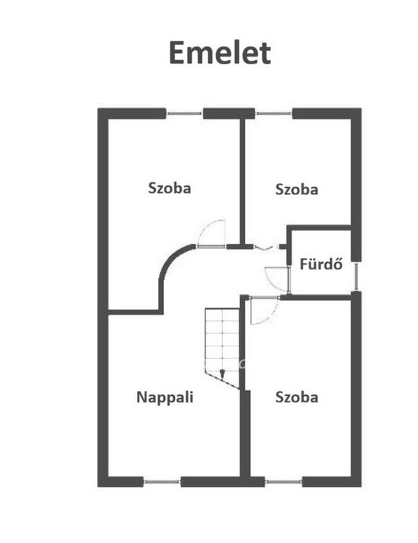 Emelet (kb. 65 m2): jelenleg 3 hálószoba, egy második nappali/közösségi tér, konyha és egy emeleti fürdőszoba található itt, mivel az emeleten is van konyha és fürdő, így a két szint teljesen szeparáltan is használható (alaprajzon egy fekete vonallal van jelölve a lehetséges külön bejárat)!