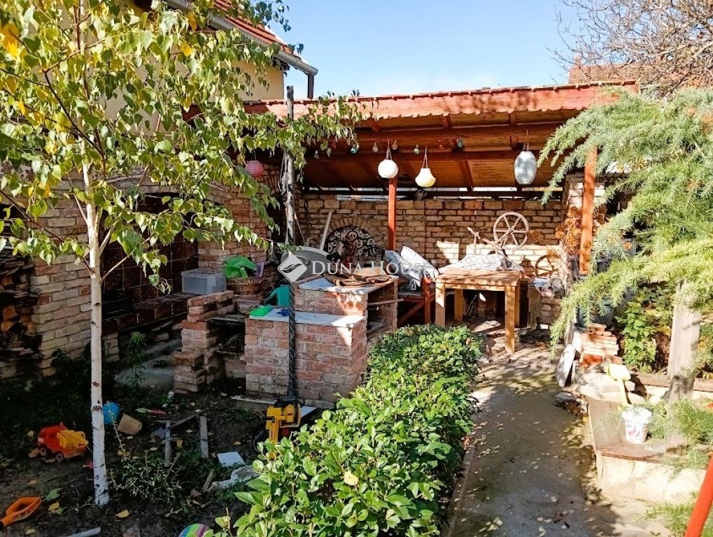 Udvaron a 3 méter széles süllyesztett gépesített medence, kerti sütögető, játszórész a családi összejövetelek nagy kedvence lehet.