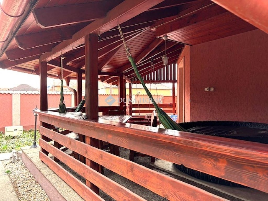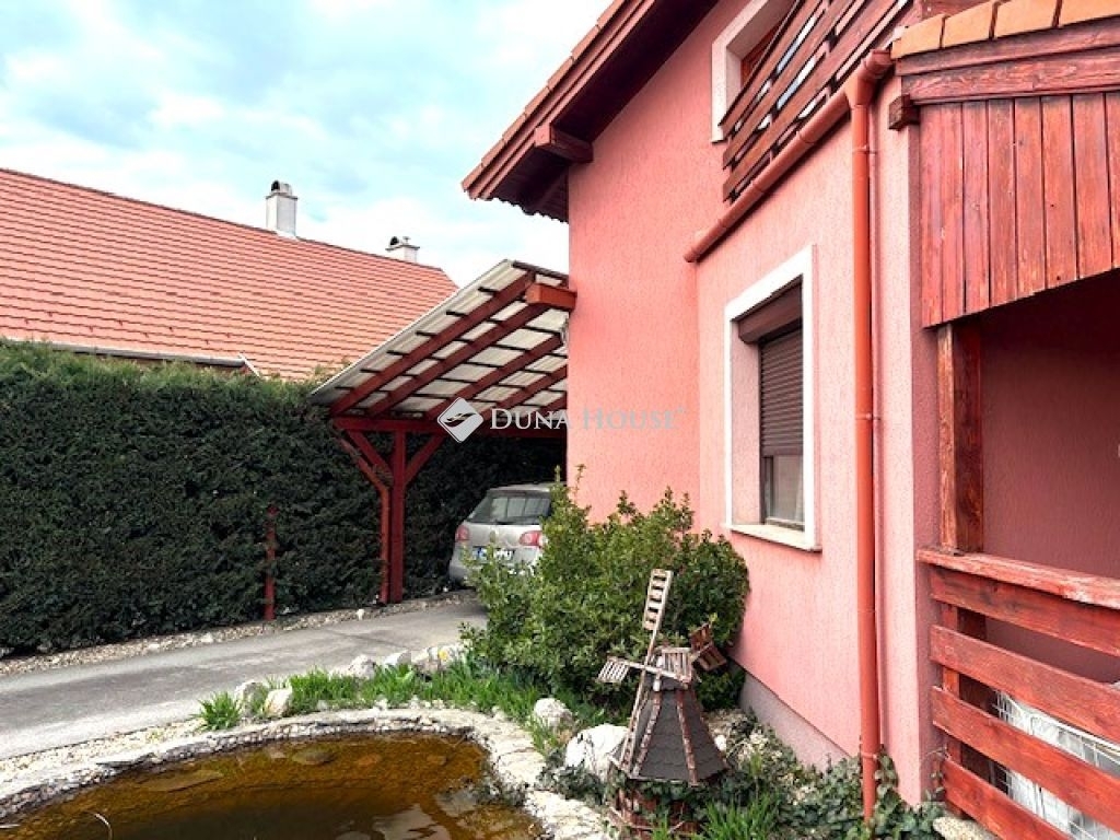 Előkert: kis halas-tavacskát láthatunk az udvarra lépve, majd a fedett teraszt és a több autó beállására is alkalmas fedett parkolót pillantjuk meg.