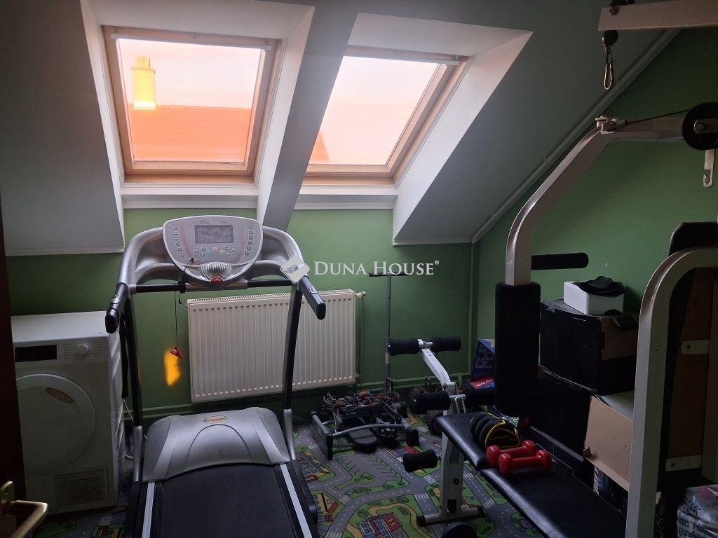 Tetőtéri szint: 3 külön nyíló szoba, közlekedő nagy térrel, fürdőszoba, WC-mosdóval, szép nyitott terasz.( Ezen a szinten rendkívül nagy a közlekedő rész, ablakkal, ahol még egy plusz szobát, vagy tea-konyhát ki lehet alakítani.)