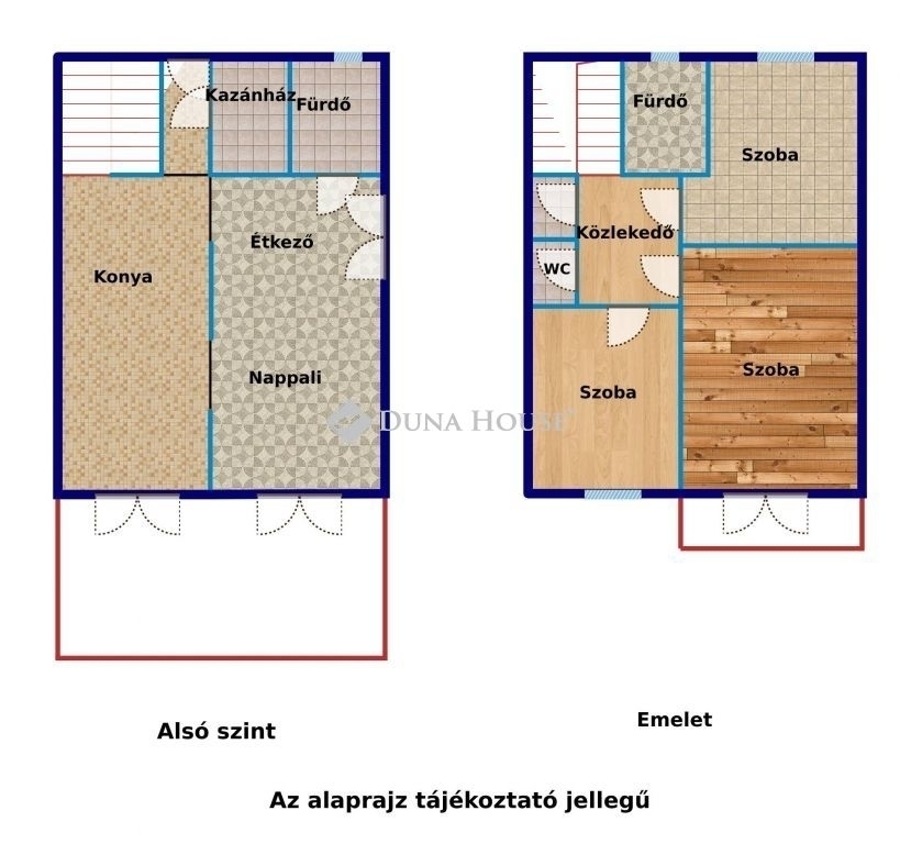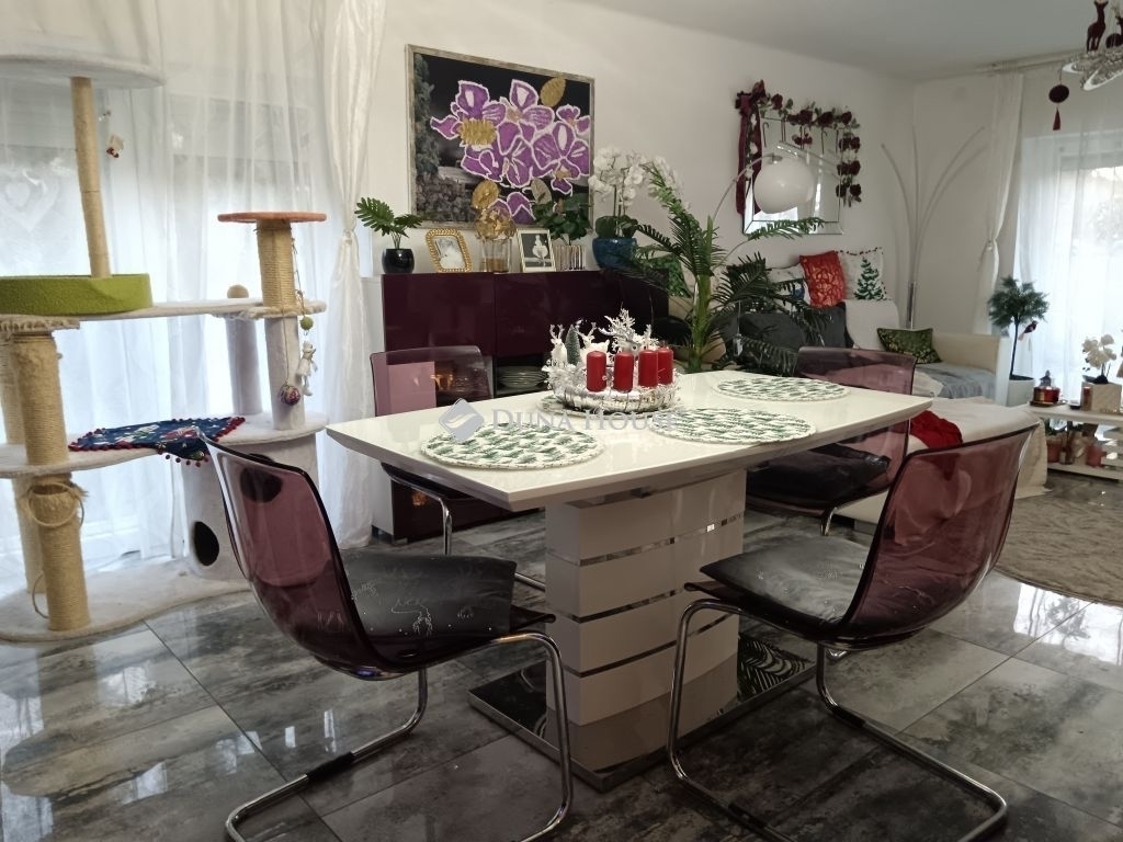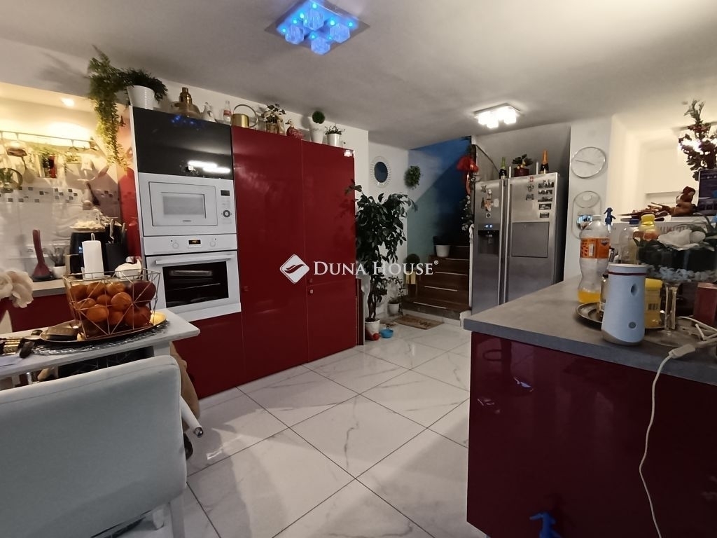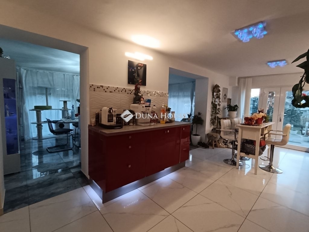 A földszinten valamennyi nyílászáró cseréje megtörtént, a villamoshálózat felújított, és minden helyiség új burkolatot kapott. Az alsó szinten egy tágas, napfényes konyha–étkező–nappali található, amely ideális teret biztosít a családi együttlétekhez.