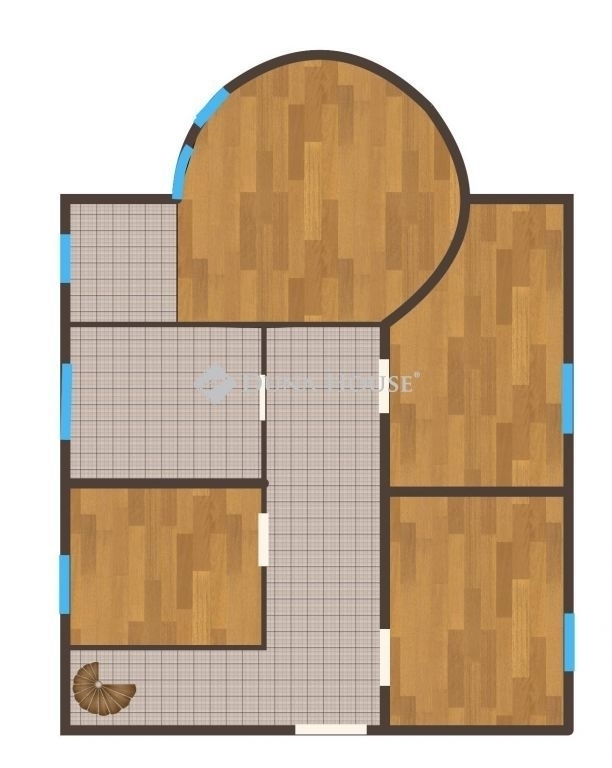 – Tetőtér (26 m²): 2 szoba, egyikben konyhasarok, fürdőszoba WC-vel