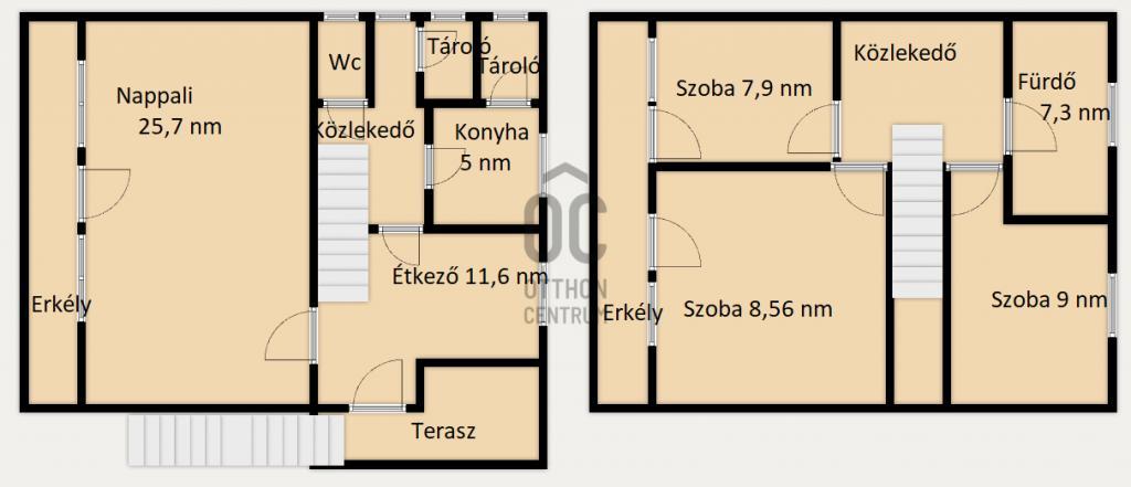 Földszint: 32 m²-es, akár két autó számára alkalmas garázs, valamint 22,5 m² tároló/kazánház