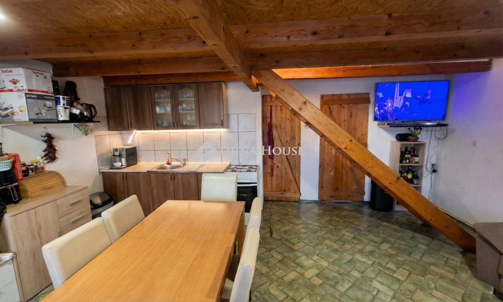 - Alsó szint: étkezős konyha