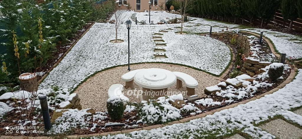 A nappali alatt egy 33 négyzetméteres, dupla garázs található, amely kényelmes parkolást és további tárolási lehetőséget biztosít. A 750 négyzetméteres, parkosított, teraszos kialakítású telek gondosan megtervezett, növényekkel szeparált, így a privát szféra maximálisan biztosított. Cédrusok, borókák, pálmák és egyéb dísznövények adják az udvar különleges hangulatát.