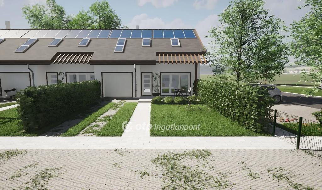 Eladó újépítésű 109 nm hasznos alapterületű tetőtér beépítéses, nappali + 3 hálószobás, mosókonyhás sorházas újépítésű ingatlan saját kertrésszel, nagy nappali kapcsolatos terasszal és garázzsal.