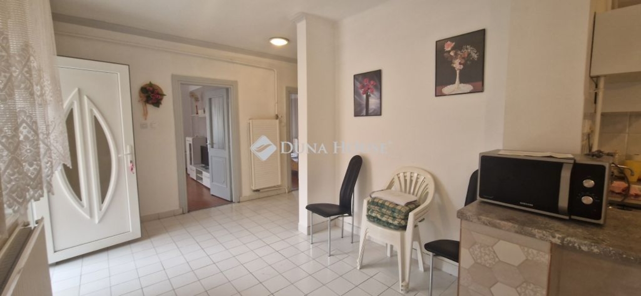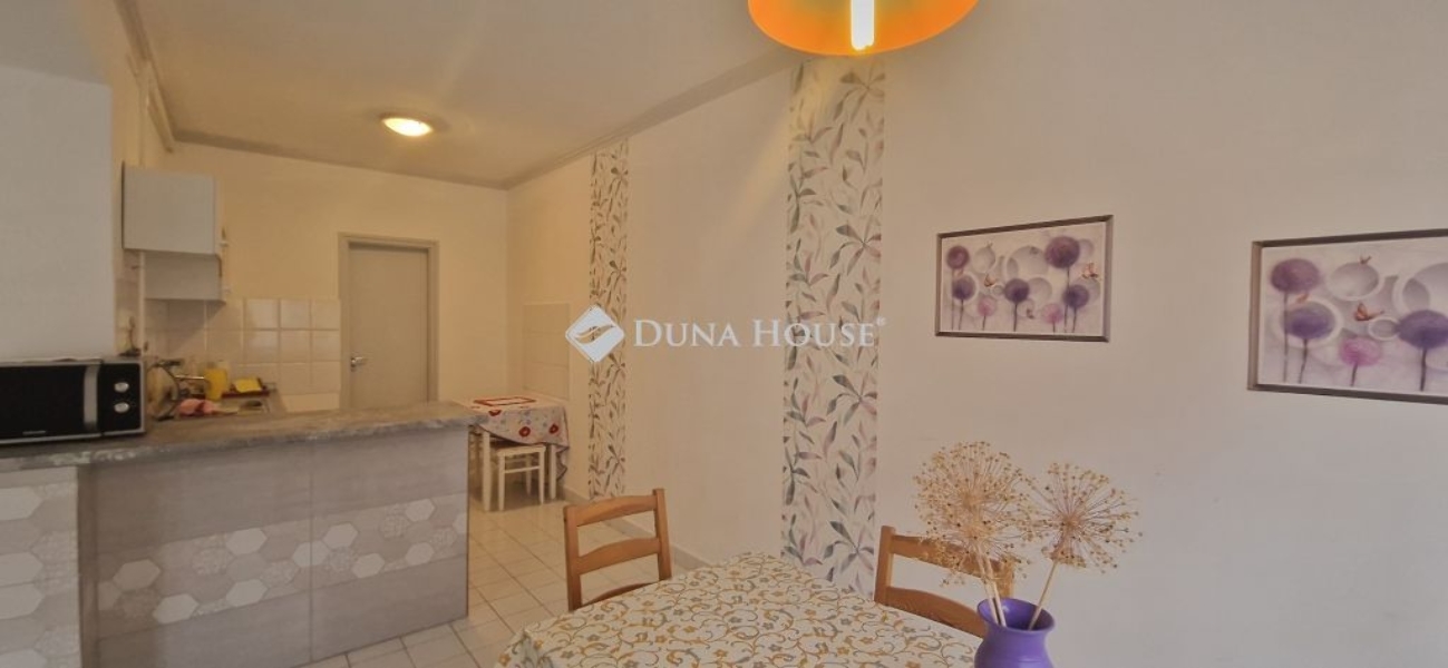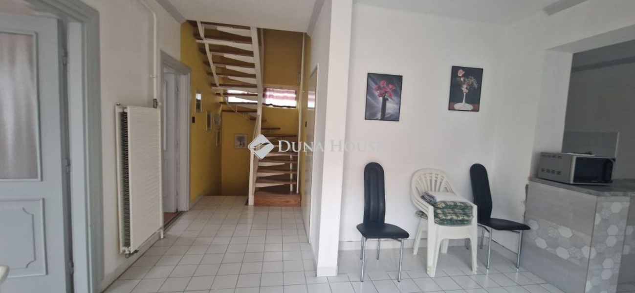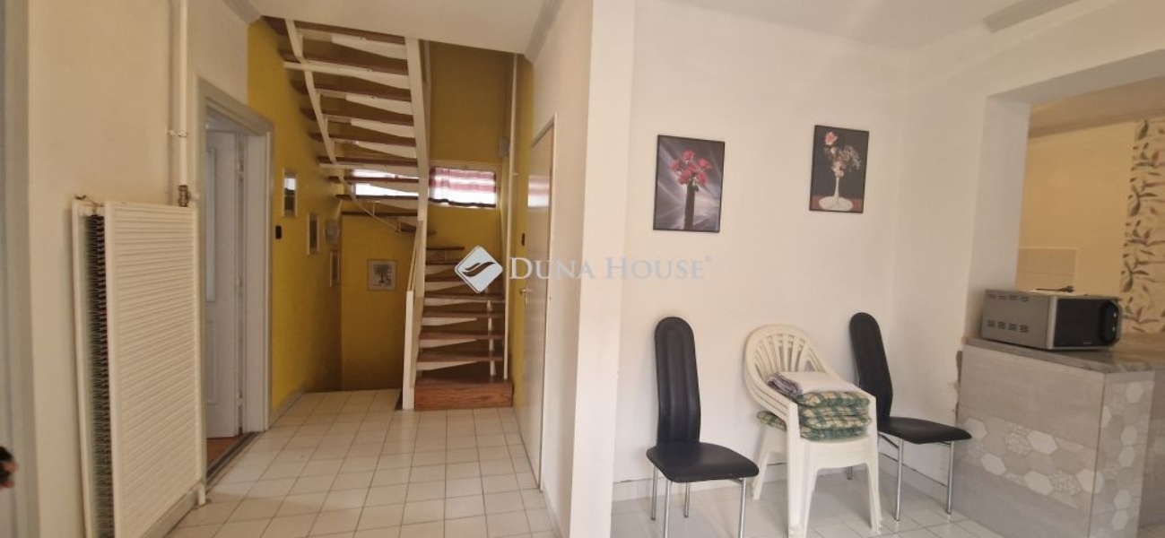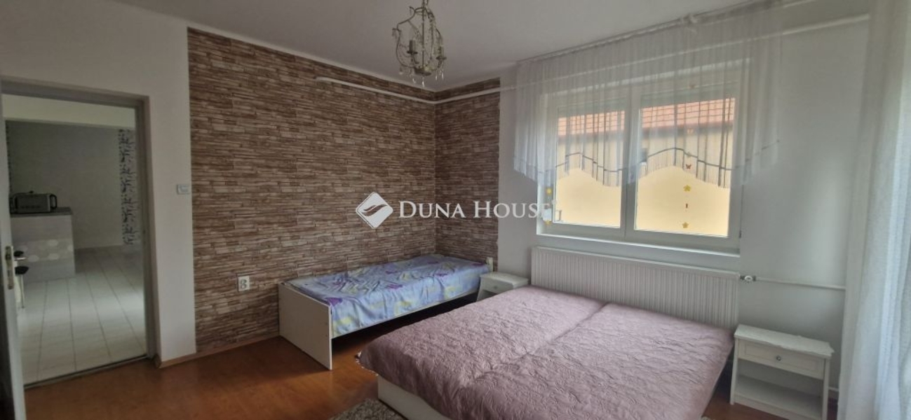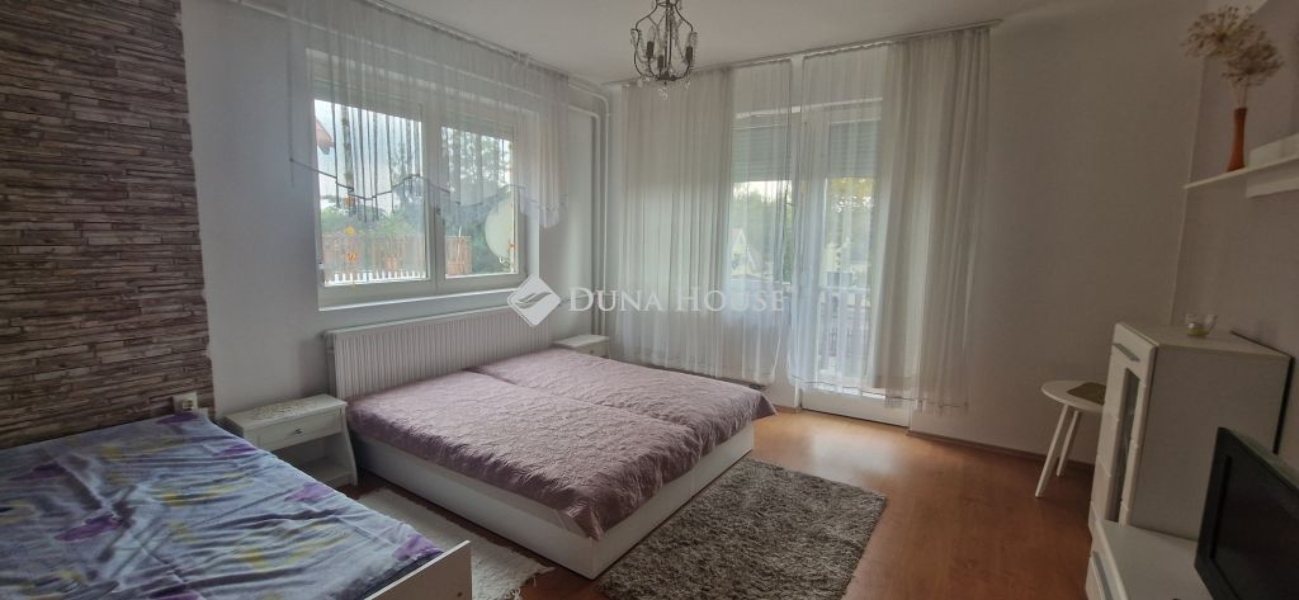 A 438 nm-es rendezett telken elhelyezkedő, 101 nm ház az 1990-es években épült. A tégla építésű ingatlan kiváló elosztású, két külön bejáratú apartmannal is rendelkezik, így ideális lehet nagycsaládosoknak, vagy befektetési célra is remek választás. Földszint elosztása: egy külön bejáratú, egyszobás apartman kapott helyett, melyben fürdőszoba-wc található, valamint egy garázs van mellette, amiből akár egy tágas konyha- étkezőnek is kialakítható. Első emelet elosztása: amerikai konyhás nappali, kamra, fürdőszoba, 2 hálószoba. Mindkét szobából kijárat nyílik a 14 m²-es erkélyre, míg a nappaliból egy 25 m²-es teraszra léphetünk ki. Ez a szint is külön bejárattal rendelkezik, így teljesen önálló élettérként is funkcionálhat. A tetőtér jelenleg szerkezetkész állapotban van, így az új tulajdonos saját igényei szerint alakíthatja ki. A ház melegéről gázcirkó gondoskodik. Az ingatlanban minden közmű megtalálható. Az ingatlanon 3 évvel ezelőtt kisebb felújítást végeztek, új burkolatot kapott a földszint, erkély, és az első emeleten a nyílászárók műanyag ablakokra lettek cserélve. A ház teljes bútorzattal együtt eladó. Tehermentes, azonnal birtokba vehető!