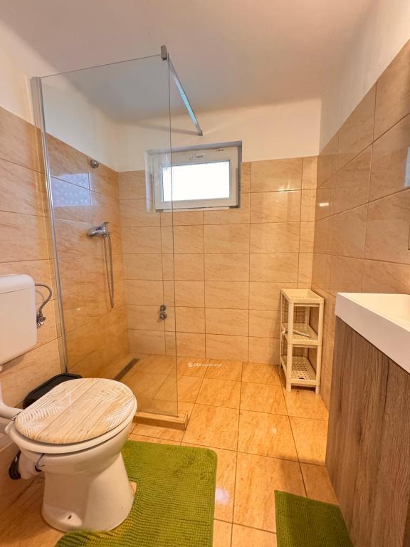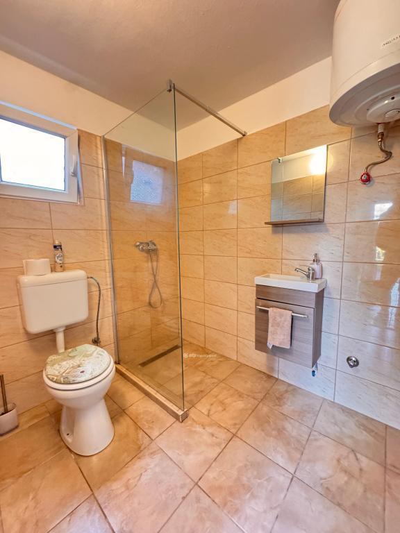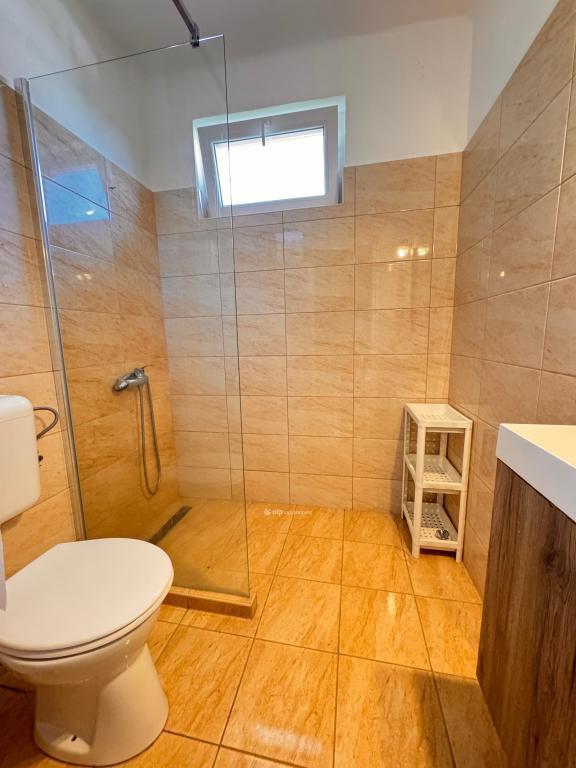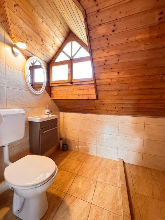 Elrendezés szempontjából az alsó szinten találunk 1 db 1,5 szobás lakást - nappali, szoba, fürdőszoba, konyha elosztású külön bejárattal, saját nagy terasszal, saját udvarral, beton kerti bográcsozóval, grillel, pavilonnal, saját térköves / füves udvarral.