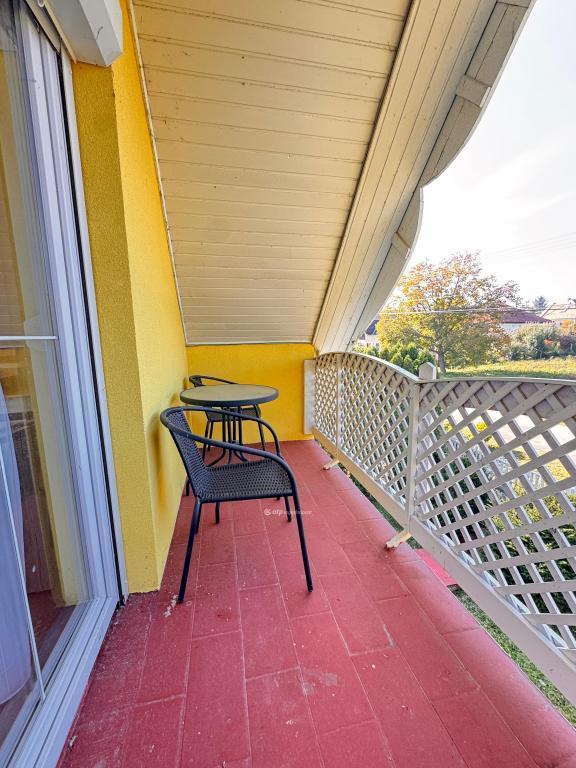 A felső szinten található egy szintén 1,5 szobás lakás - nappali, szoba, fürdőszoba, konyha elosztással, saját erkéllyel, udvarral.