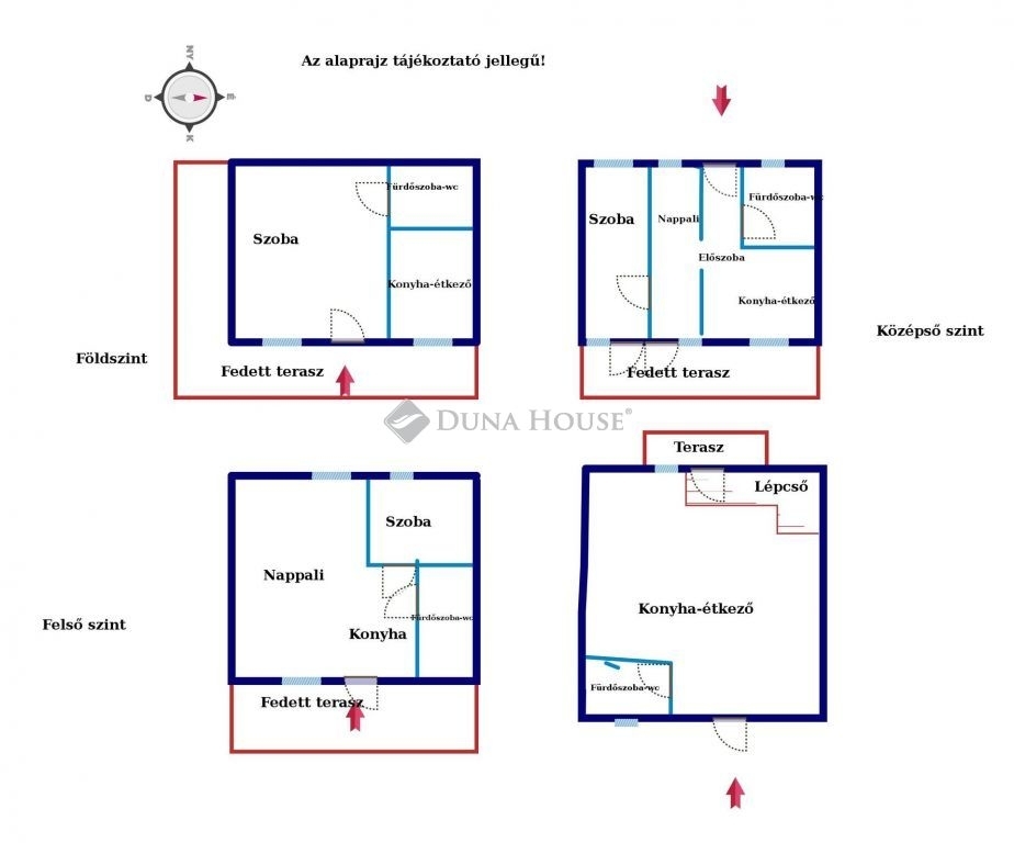 Az ingatlan elosztás: földszinten, konyha, fürdőszoba WC -vel, szoba, 34 nm-es fedett terasz. A középső szinten: szoba, fürdőszoba WC-vel, konyha- étkező, nappali található. Erre a szintre külső lépcsőn jutunk fel. A tetőtérben nappali, fürdőszoba WC-vel, szoba található. A 29 nm- es oldalsó lakrész elosztása: konyha- étkezővel, szoba, fürdőszoba WC-vel, és egy tetőtéri szoba található. Mindegyik lakrész fedett terasz kapcsolatos, külön bejáratú. A telken található egy táróló. A középső és a tetőtéri szint között a belső lépcső kialakítható. A 639 nm-es rendezett, parkosított telken elhelyezkedő 182 nm-es téglaépítésű ingatlanba minden közmű megtalálható. A ház melegét cserépkályha nyújtja. Az ingatlan folyamatosan karbantartott. A telek két utcára nyílik, kétbejáratú, több gépjármű parkolásra van lehetőség. Tulajdonviszonyai rendezettek, azonnal költözhető. Hangulatos, jó helyen lévő ház állandó lakhatásra kitűnő választás, de kifejezetten ideális nyaralónak, vagy befektetésnek is remek lehetőség. Amennyiben ajánlatom felkeltette érdeklődését, kérem keressen elérhetőségeim egyikén, akár hétvégén is! Hibás hirdetés bejelentése