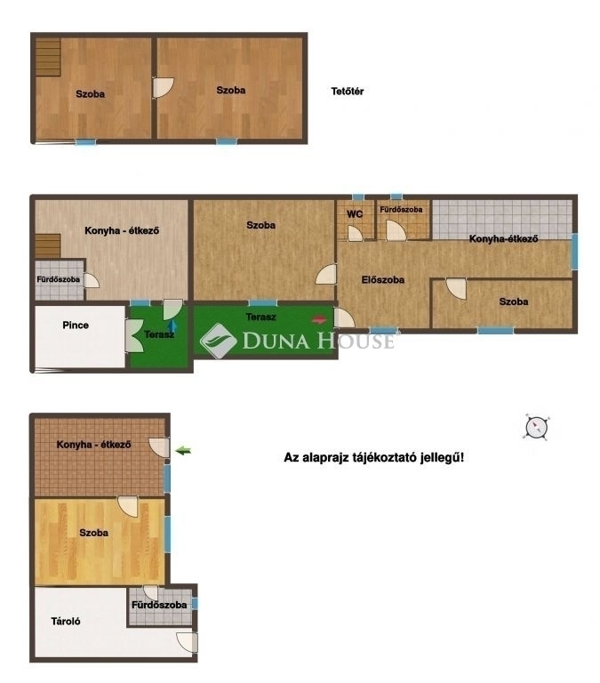 Az ingatlan három külön bejárattal rendelkezik, mindegyikhez külön almérő tartozik, így ideális választás több generáció együttélésére, befektetésre, vagy akár kétgenerációssá alakításra is.